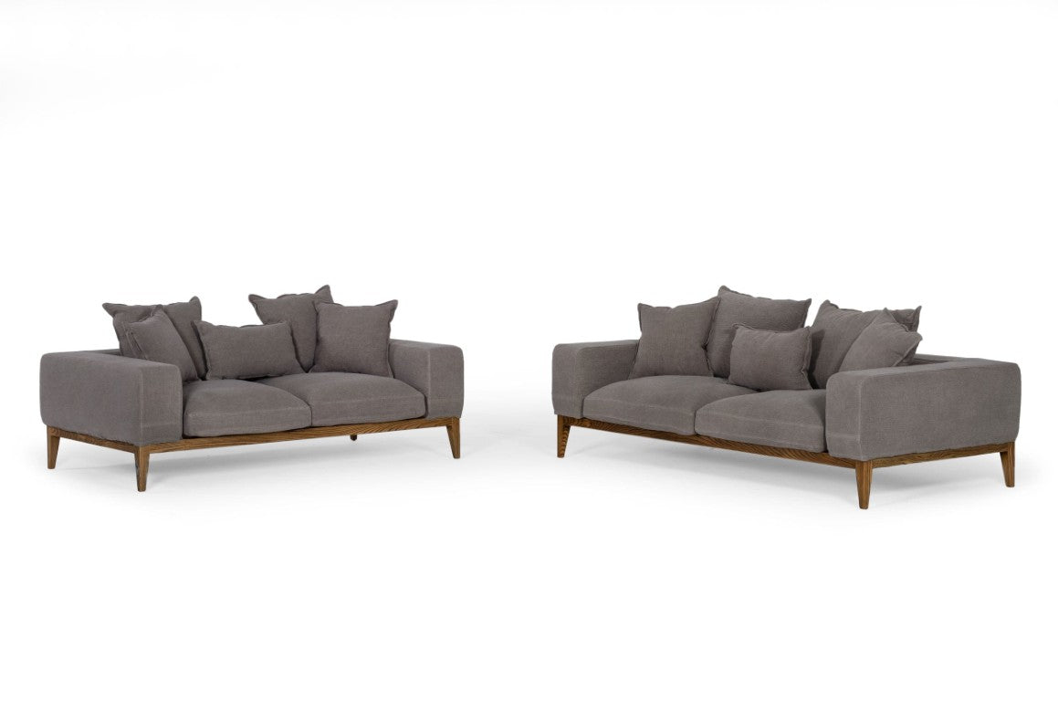 Sink into modern comfort with the Corina loveseat — a refined blend of industrial and farmhouse aesthetics crafted for everyday living. Its luxurious grey linen upholstery and rich ash wood legs deliver timeless style, while a plush mix of foam, fiber, and duck feathers ensures comfortable, supportive seating. Built to be both attractive and durable, this loveseat fits seamlessly into contemporary lofts or cozy living rooms.