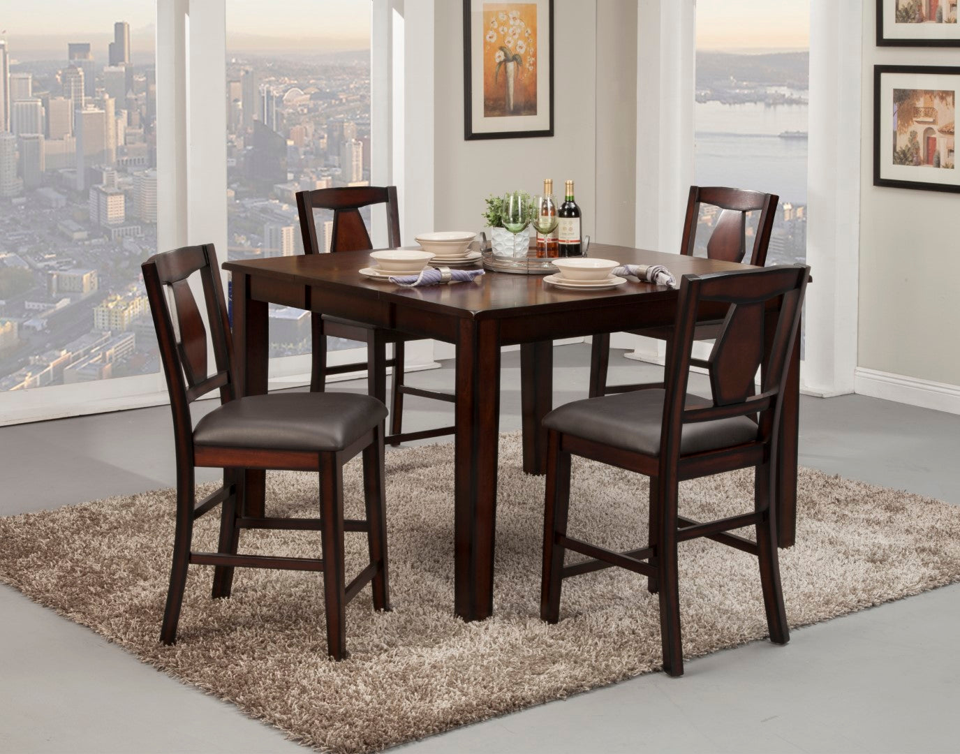 - Feature 2: Set includes a Counter-height table and four coordinating chairs