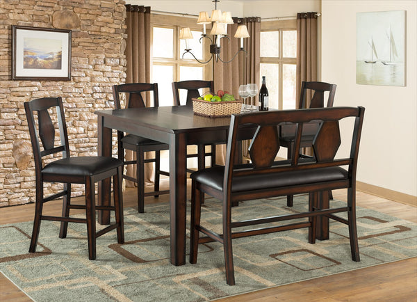 - Feature 2: Set includes a Counter-height table, four coordinating chairs, and an upholstered bench