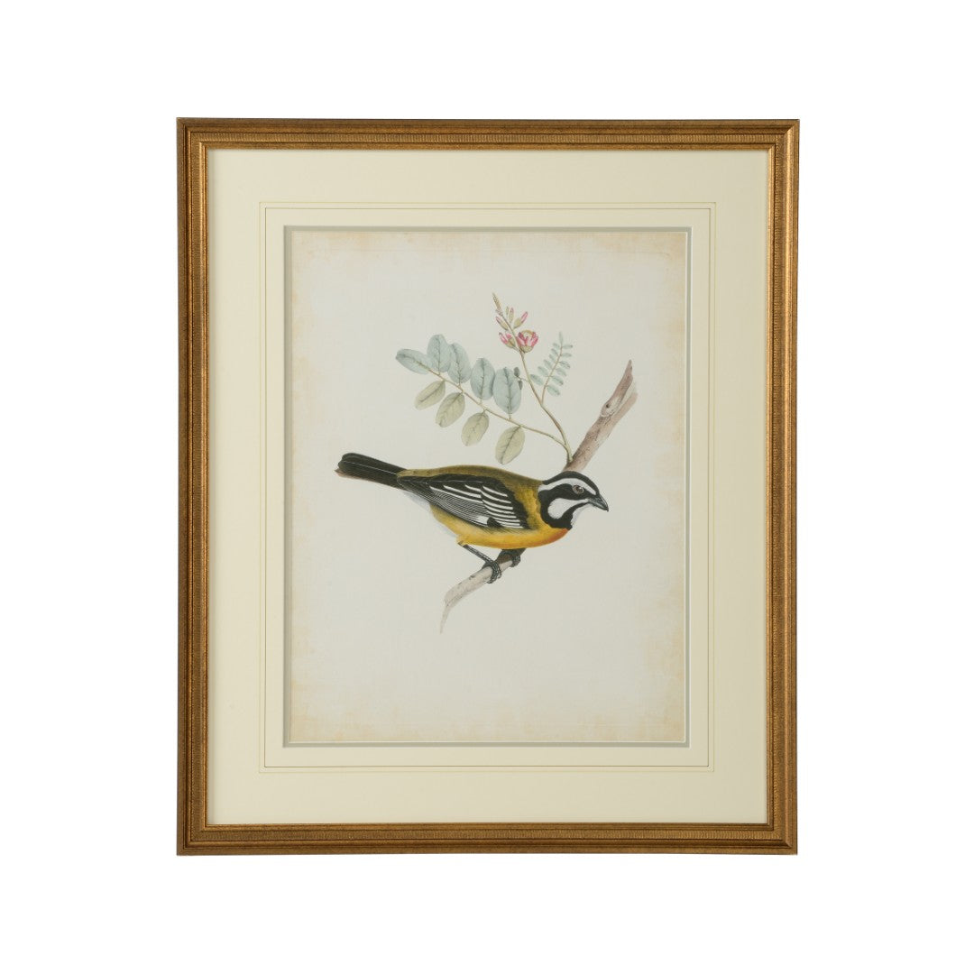 Delicate Birds V brings a graceful, nature-inspired focal point to any room. This finely crafted giclée print is beautifully presented with a double mat featuring elegant French lines and encased in a classic gold frame, offering refined depth and a gallery-quality finish that complements both traditional and contemporary decor.
