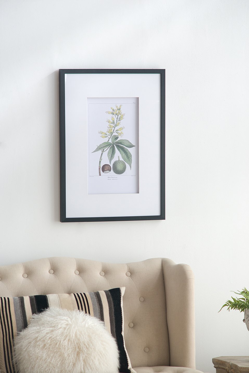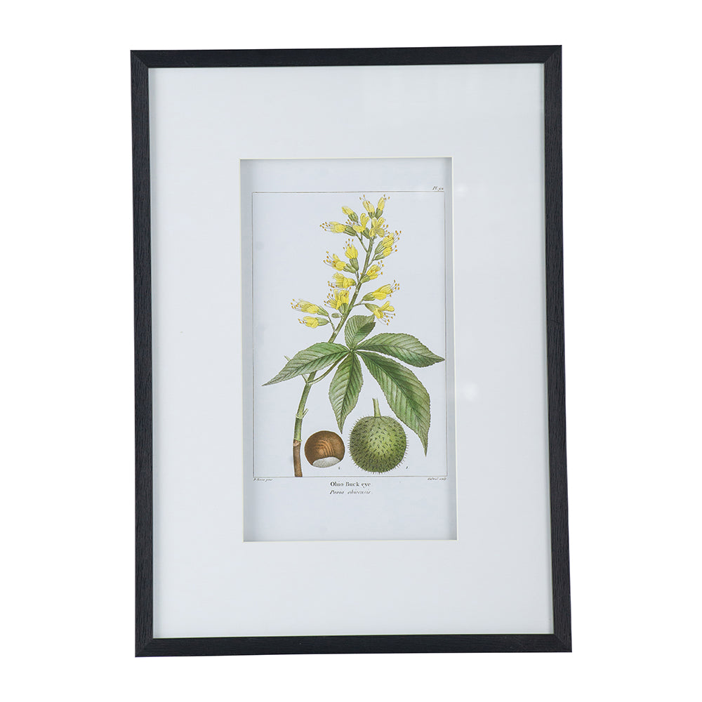 - Set Includes: Two framed botanical art prints featuring leaves, flowers, and fruit on white backgrounds