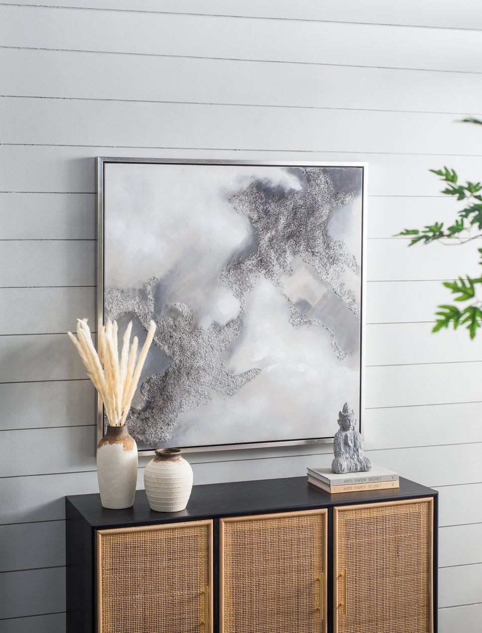 Capture the quiet drama of an approaching storm with this hand-painted wall art—an evocative focal piece that brings calm, contemplative energy to living rooms, bedrooms, and offices. Expertly layered oil paints create a soft, wispy gradient from pale gray and white into deep charcoal, producing depth and motion while remaining subtle enough to complement modern and minimalist interiors.