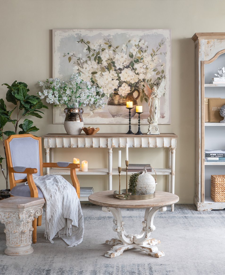- The muted tones and nature-inspired design allow this piece to complement traditional, French Country, shabby chic, and farmhouse themes, ensuring it can slot into your home decor seamlessly