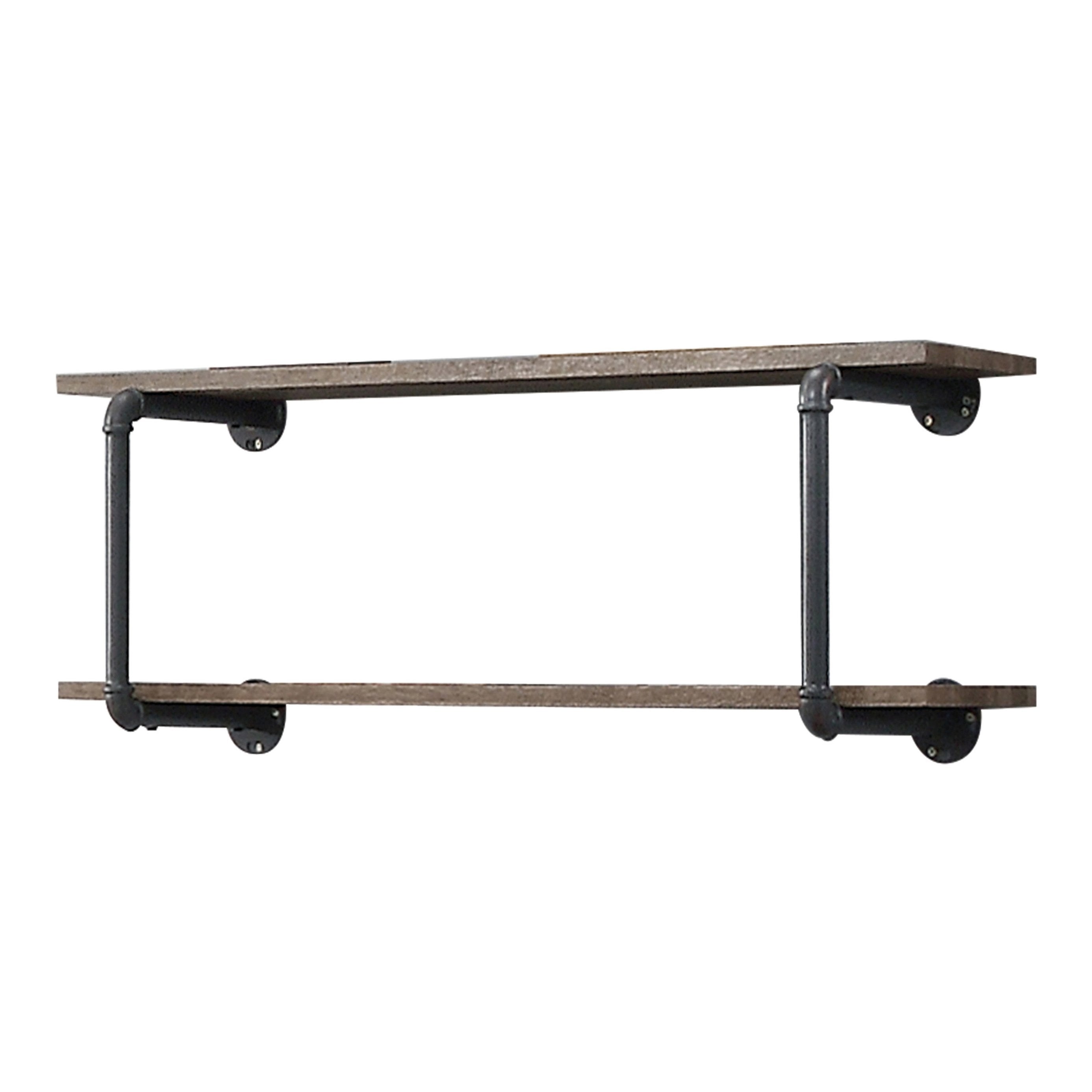 Bring industrial charm and practical organization to any room with this two-tier wall shelf in Antique Oak and Sandy Grey. Crafted to be both sturdy and stylish, it offers versatile storage for books, plants, kitchenware, or decorative accents while keeping floor space clear. The clean lines and mixed-material finish suit modern, rustic, and transitional interiors.