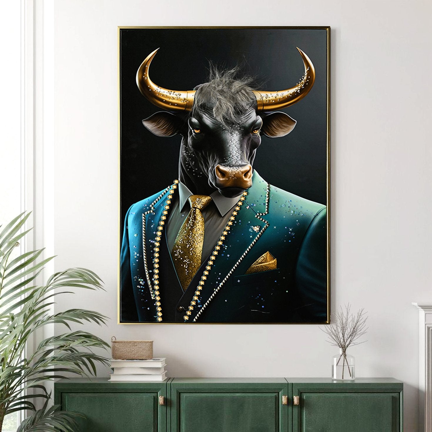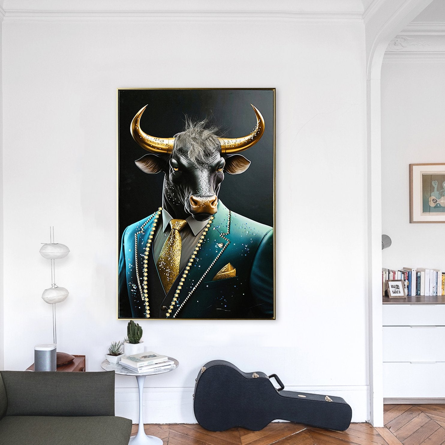 Bring a touch of whimsical sophistication to your workspace or living area with this Executive Blue Buffalo canvas wall art. Featuring a dapper buffalo in a tailored suit, the piece pairs classic portraiture with modern British humour to create a conversation-starting focal point. Printed on premium gallery-wrapped canvas and ready to hang, it’s ideal for offices, lounges, studies, or any room that could use personality with polish.