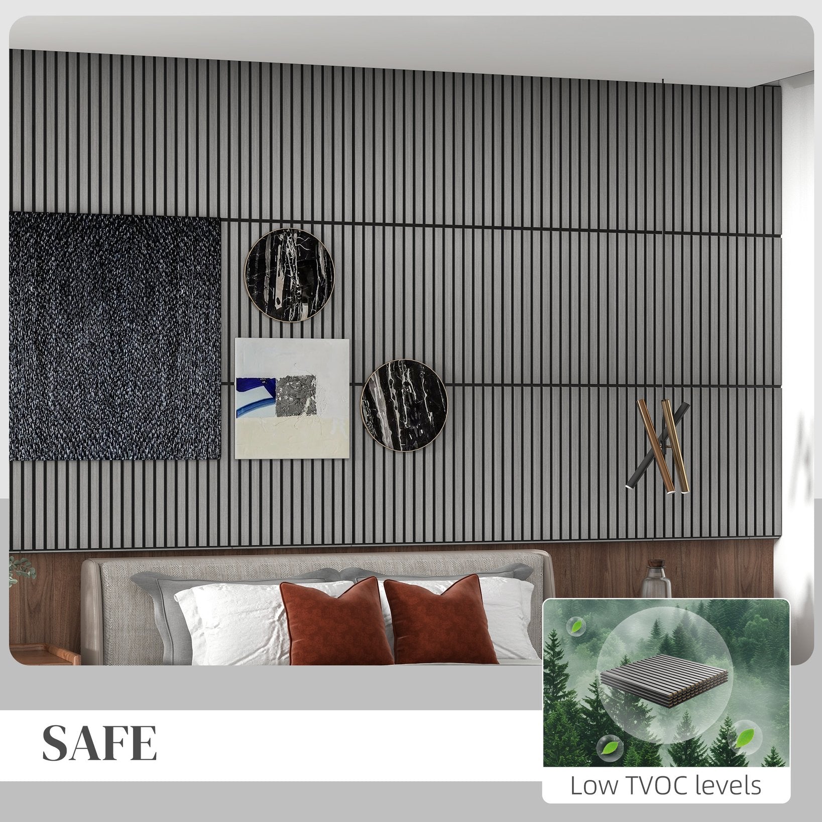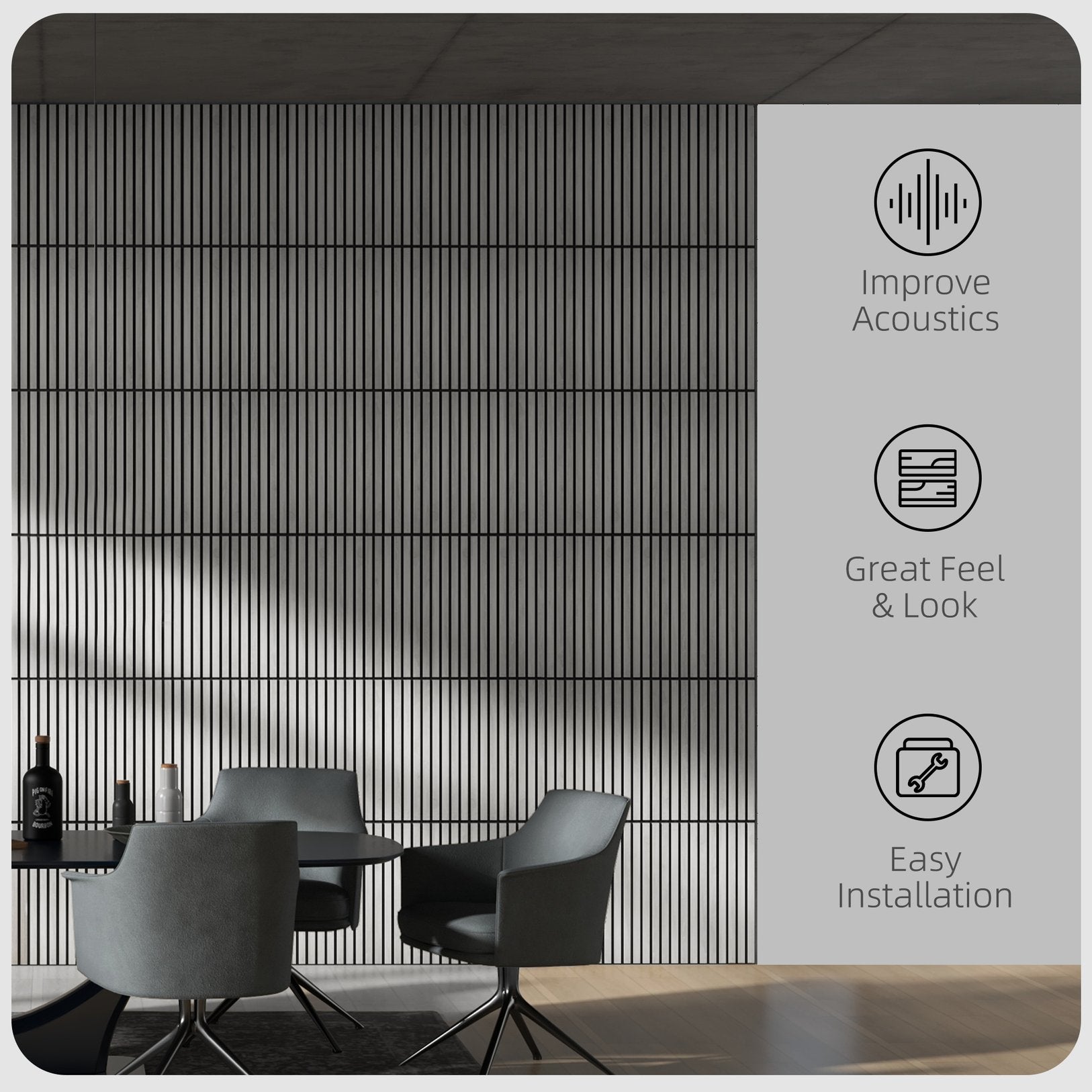 - Stylish Natural Look: Create an appealing DIY slatted wall with these gray-colored acoustic wall panels. They easily integrate with your existing decor while adding a touch of sophistication to the room.