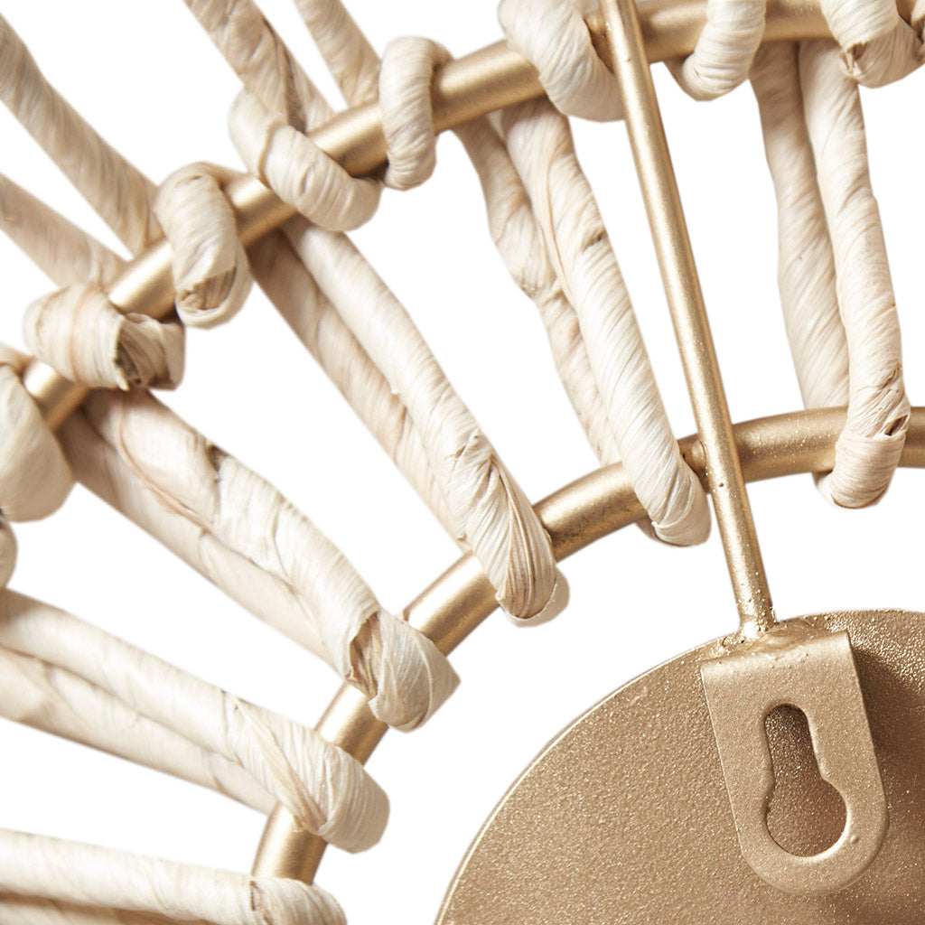 Bring a warm, natural accent to any room with this curated 3-piece wall decor set. Each round piece combines a slim iron frame, a textured natural fiber surround, and a central mirror to reflect light and add depth—perfect for creating a modern boho focal point above a console, sofa, or in a hallway. The trio is designed to be displayed together for layered impact or separately to accent multiple areas throughout your home.