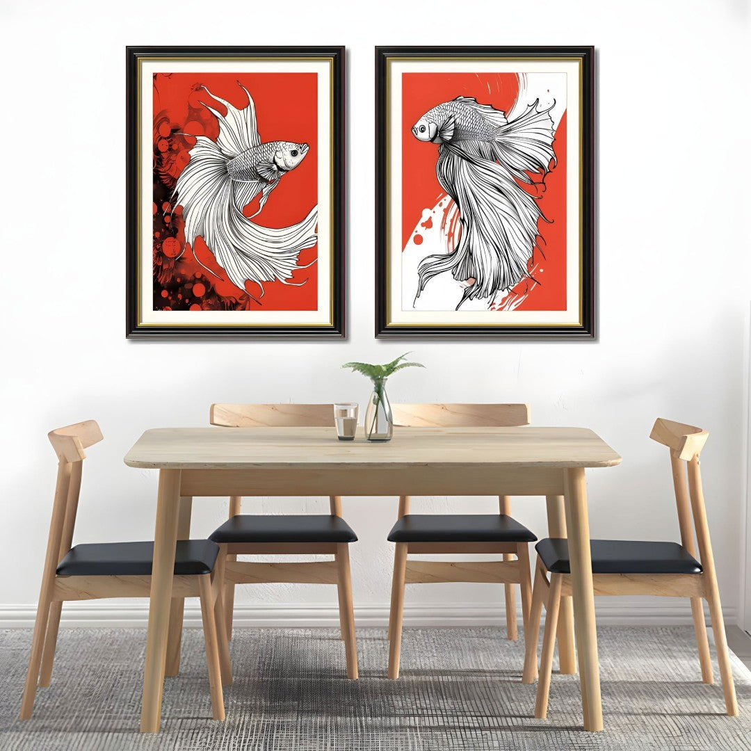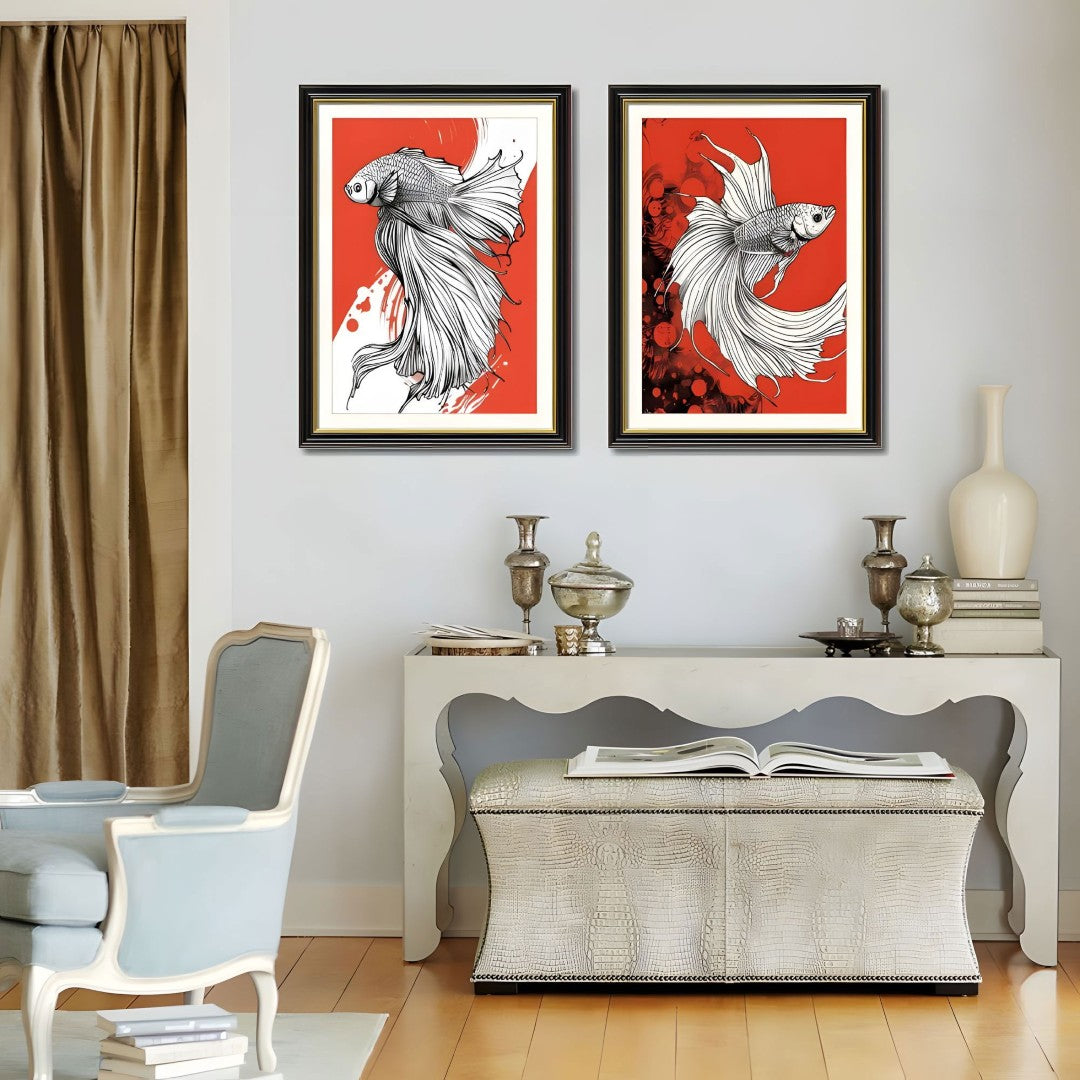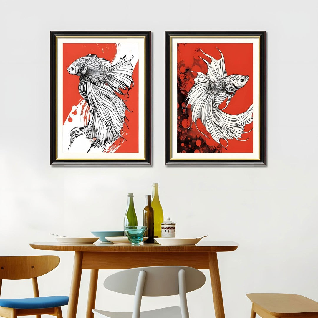 - Set of 2 Coordinated Prints: Two complementary Betta fish canvases designed to hang together for a balanced, contemporary display.