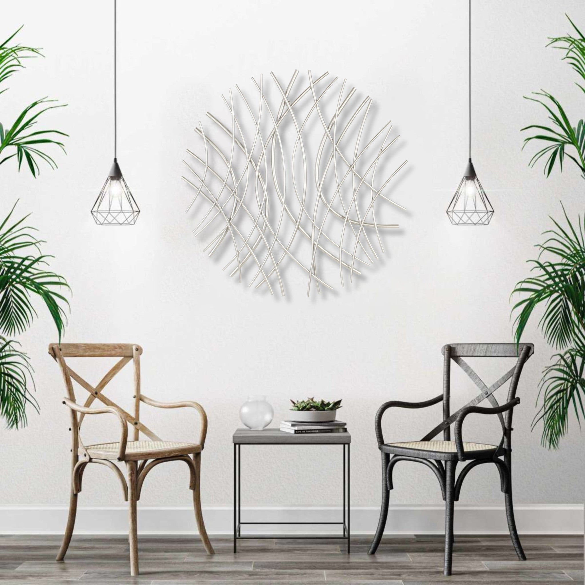 - This unique metal strips wall decor will add sculptural and dimensional detailing to your room.