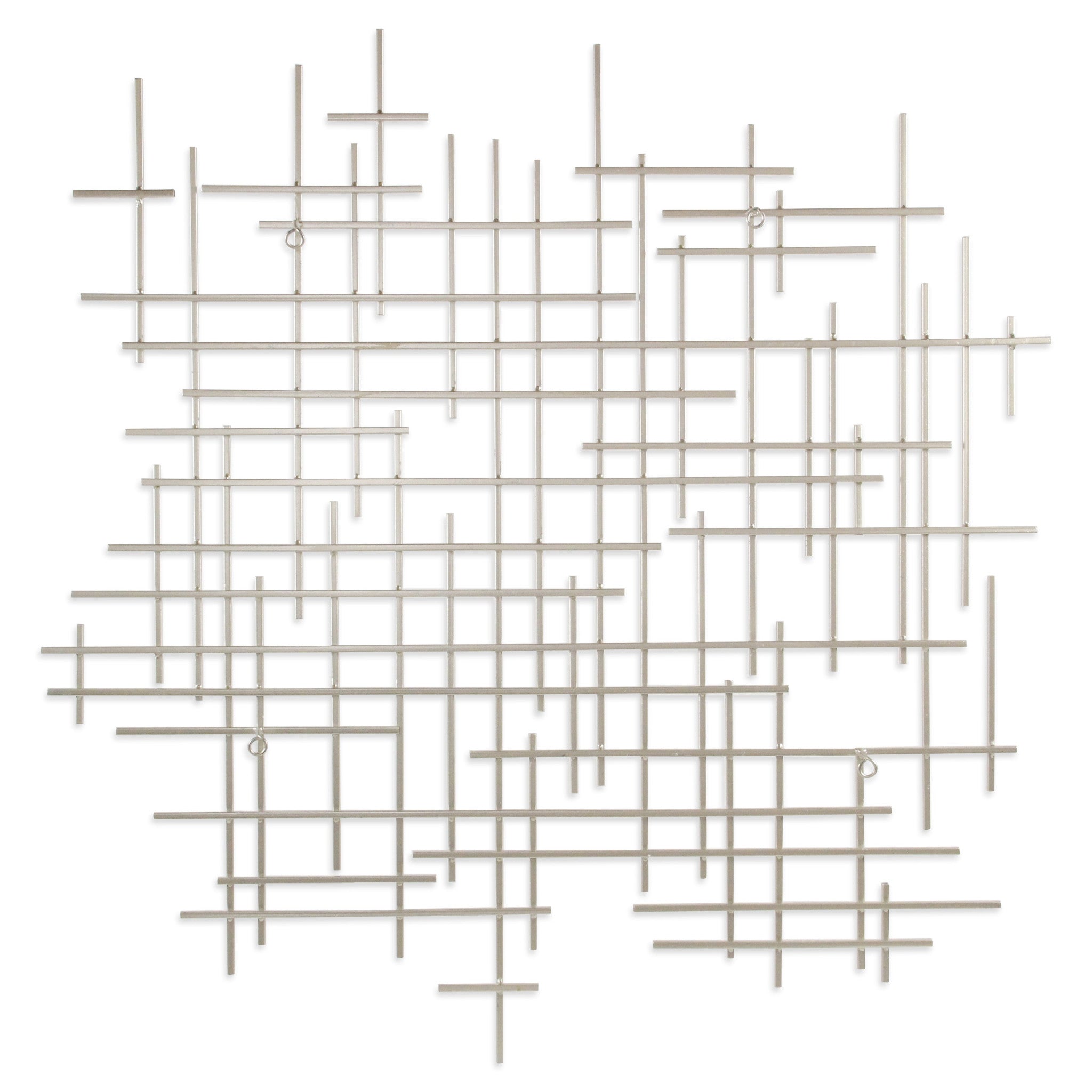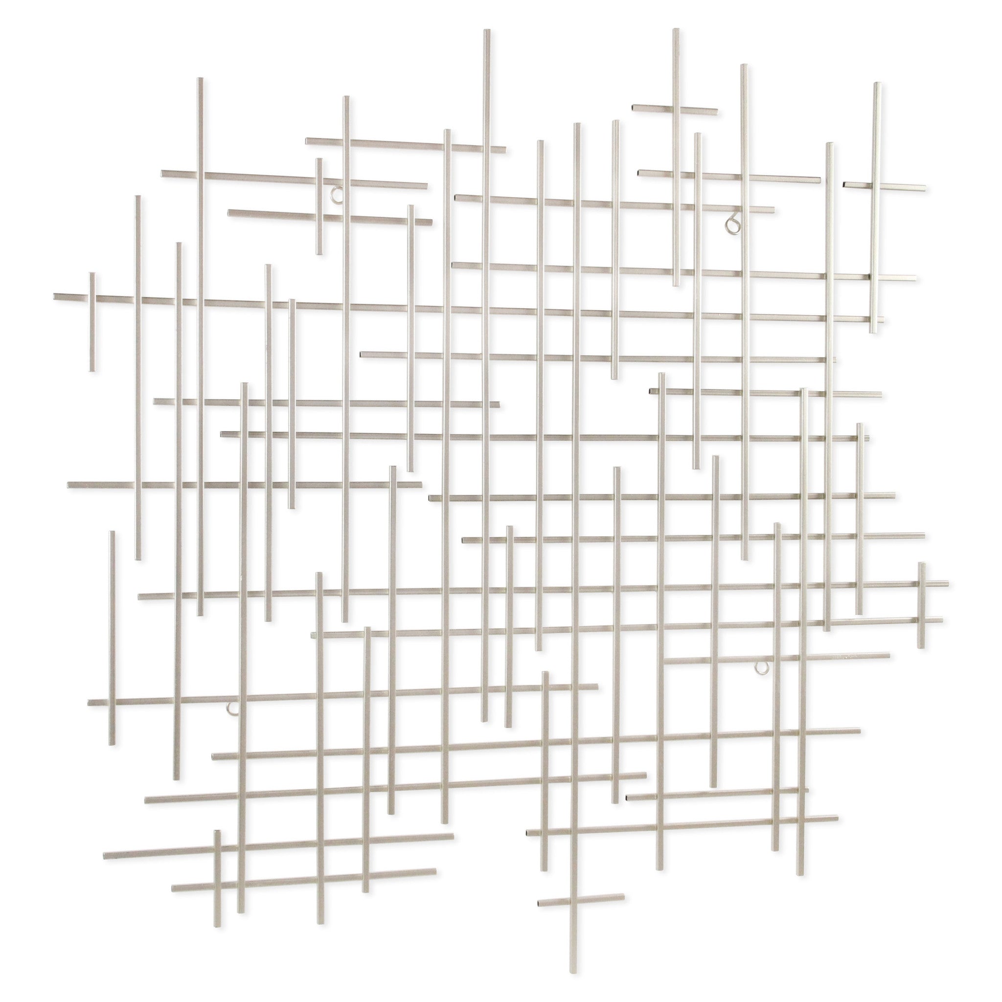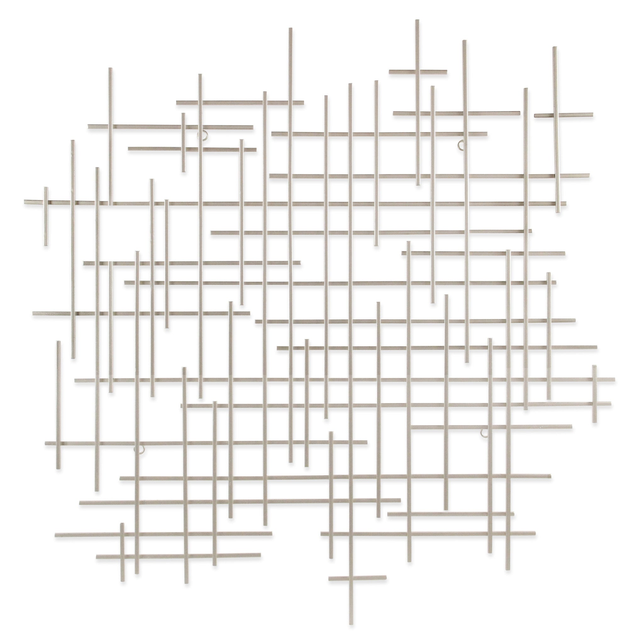 - Features geometric overlapping metal strips to create a modern abstract grid design.