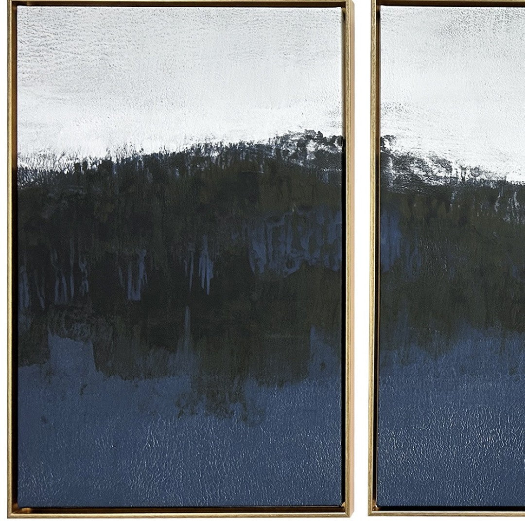- This striking and modern abstract wall art comes complete surrounded by a gold frame.