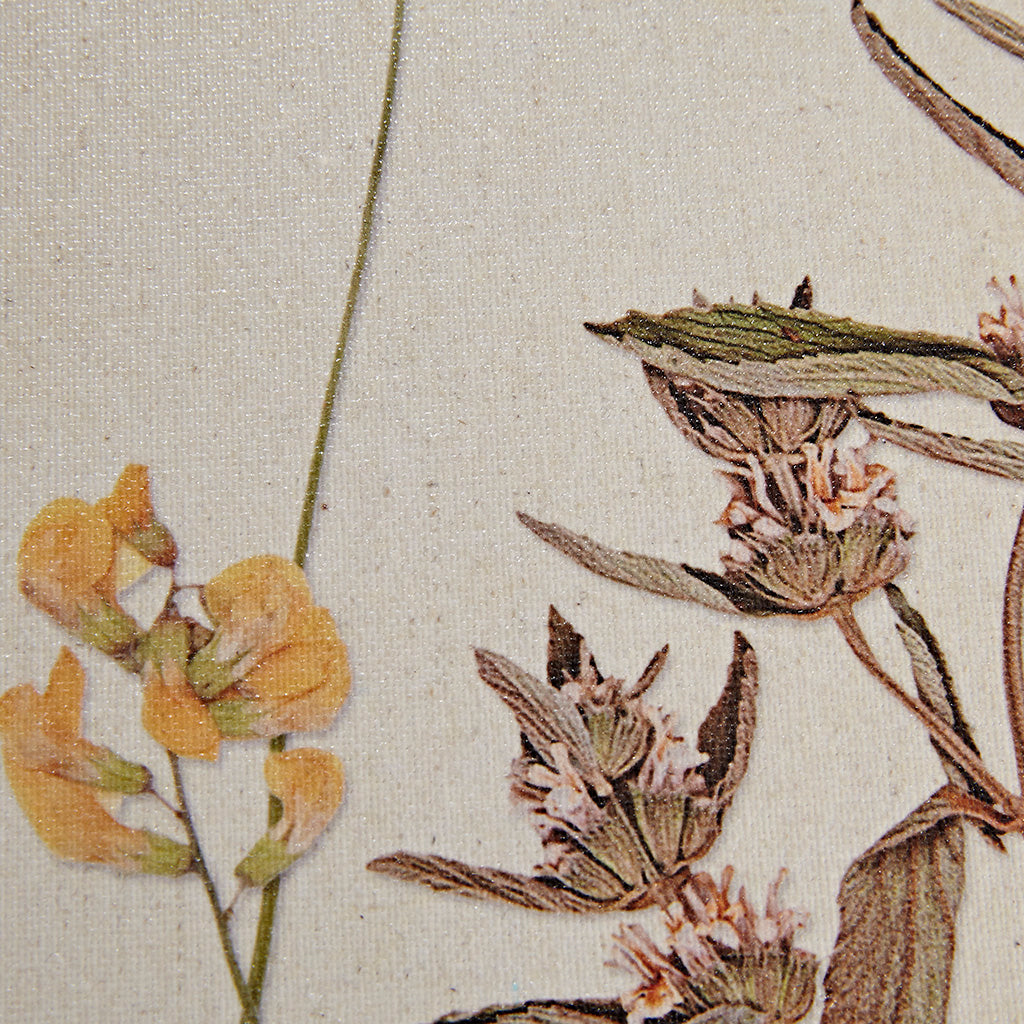 - Set of two framed canvases featuring delicate wildflower illustrations in muted, feminine tones
