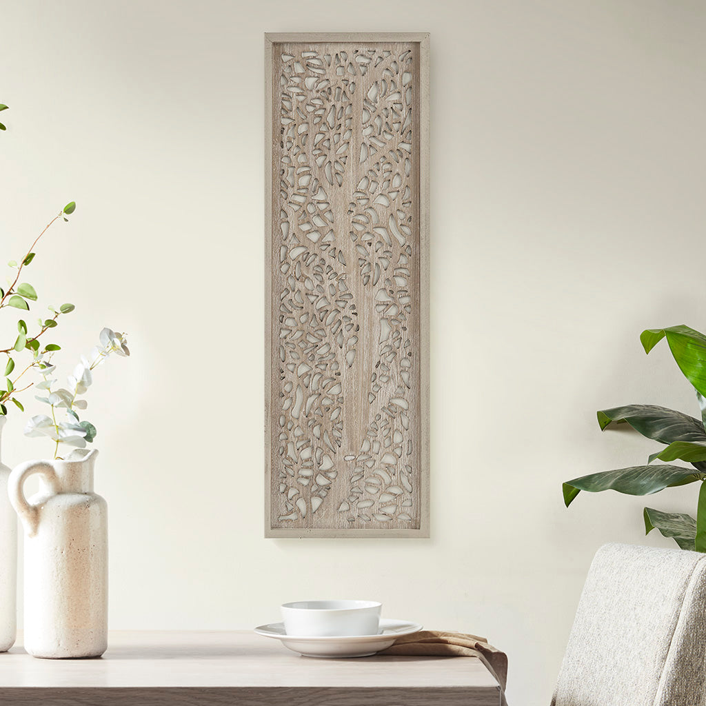 Bring a fresh, modern botanical accent to your walls with this laser-cut laurel branch panel by artist Emily Warne. The intricate MDF cutwork contrasts subtly with a whitewashed fir frame to create a contemporary yet natural focal point that complements coastal, farmhouse, and minimalist interiors. Versatile and ready-to-hang, this piece adds texture and visual interest without overpowering a room.