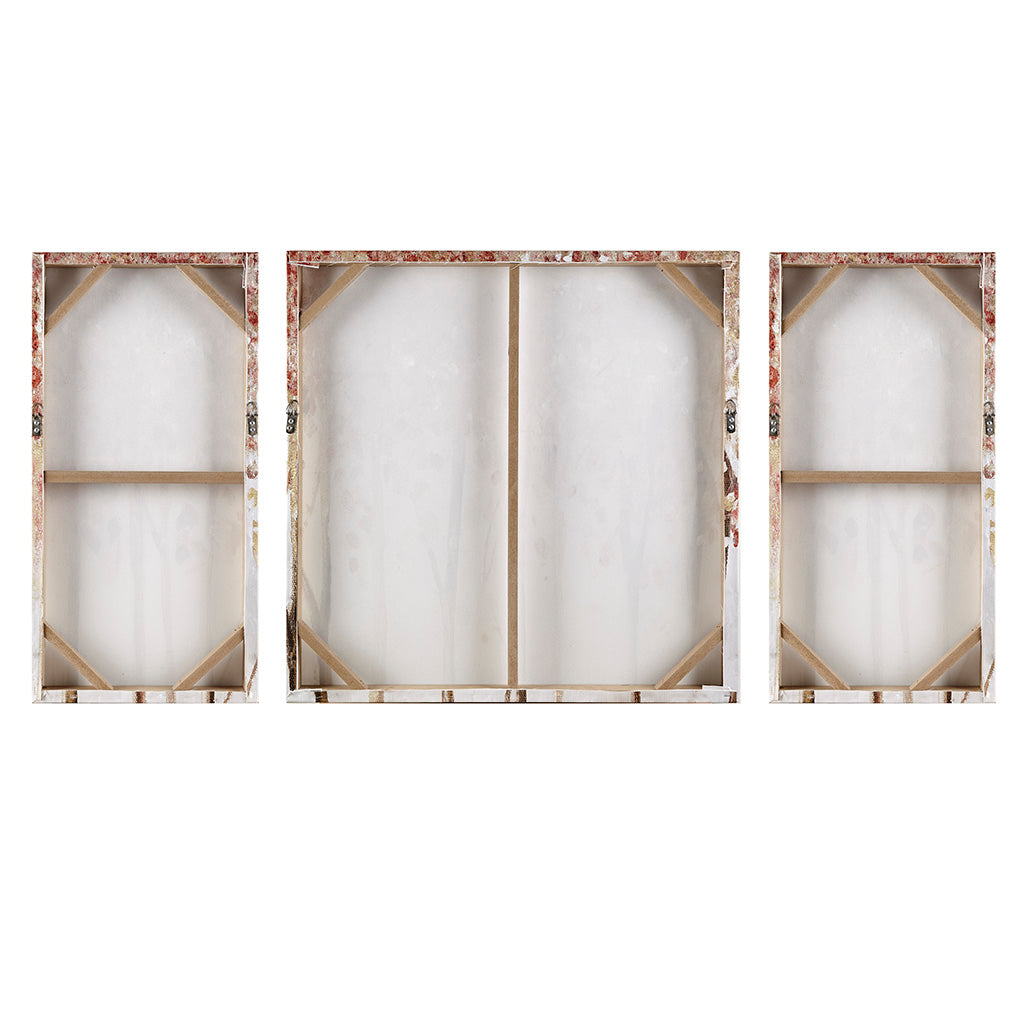 - Dimensions: Largest canvas 27" x 27"; two side canvases 13.5" x 27".