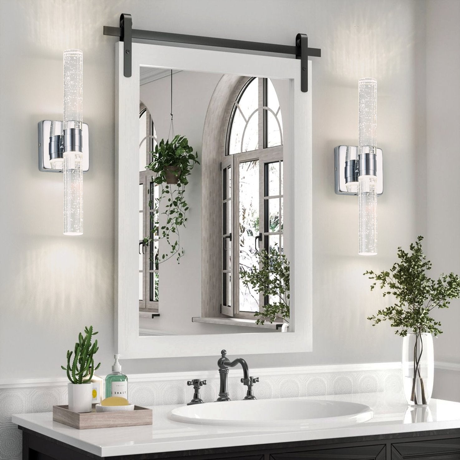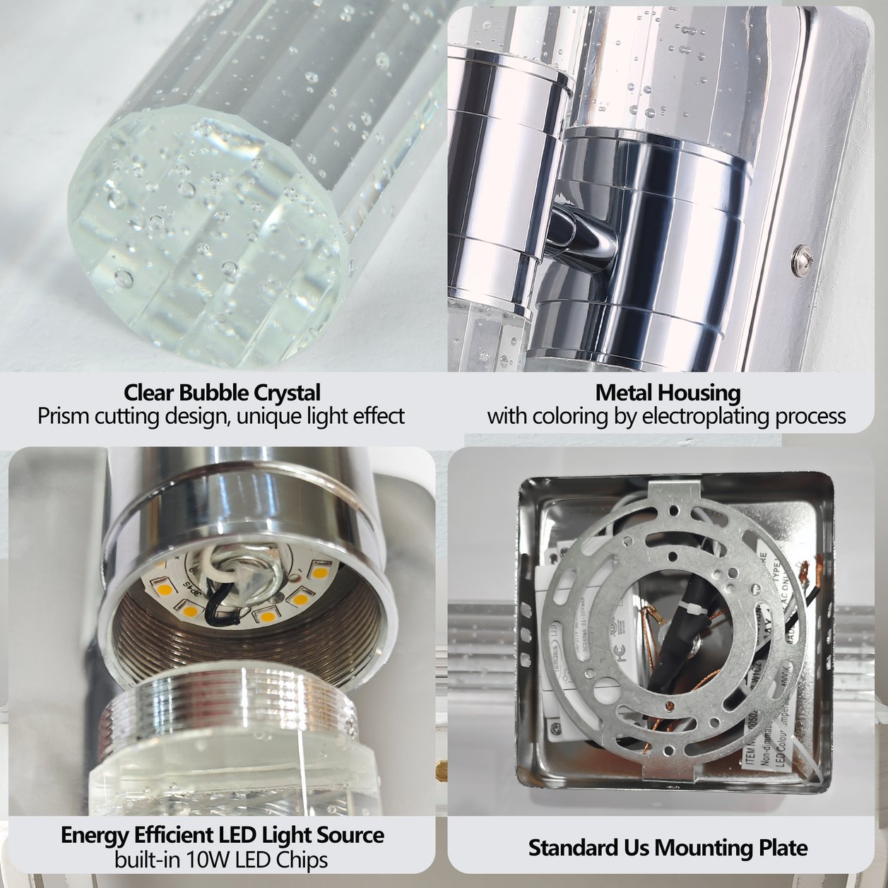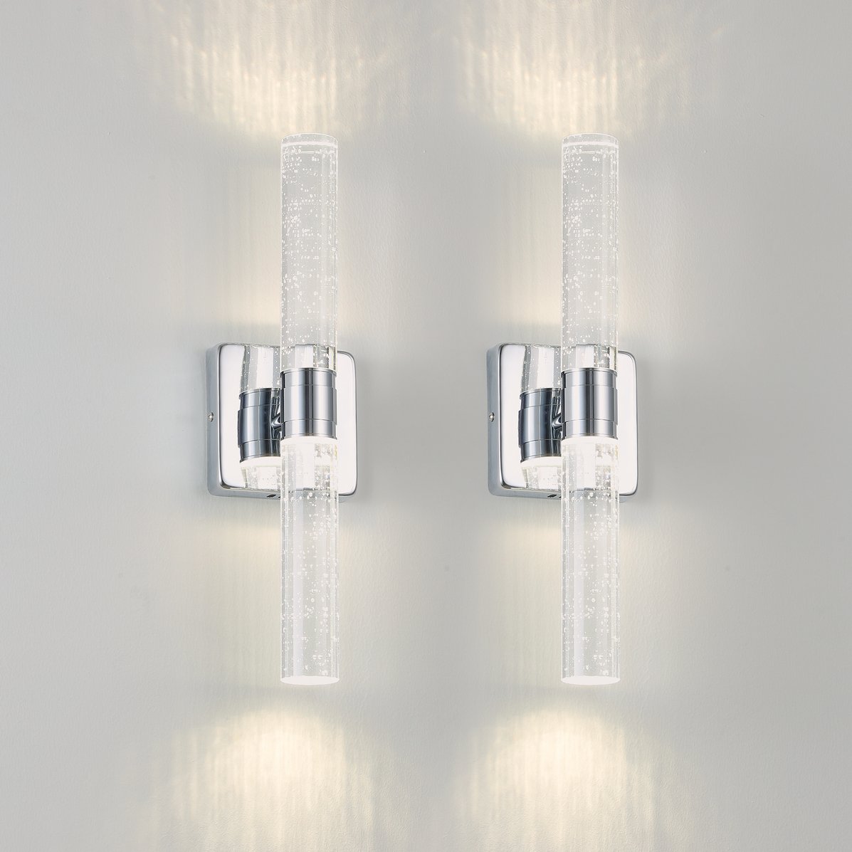Add refined sparkle to any room with this contemporary 2-light wall sconce, combining a sleek chrome frame with cascading bubble crystal accents for a modern, elegant look. Ideal for bathrooms, bedrooms, and hallways, it delivers bright, neutral LED illumination and a compact profile that complements a variety of interior styles.