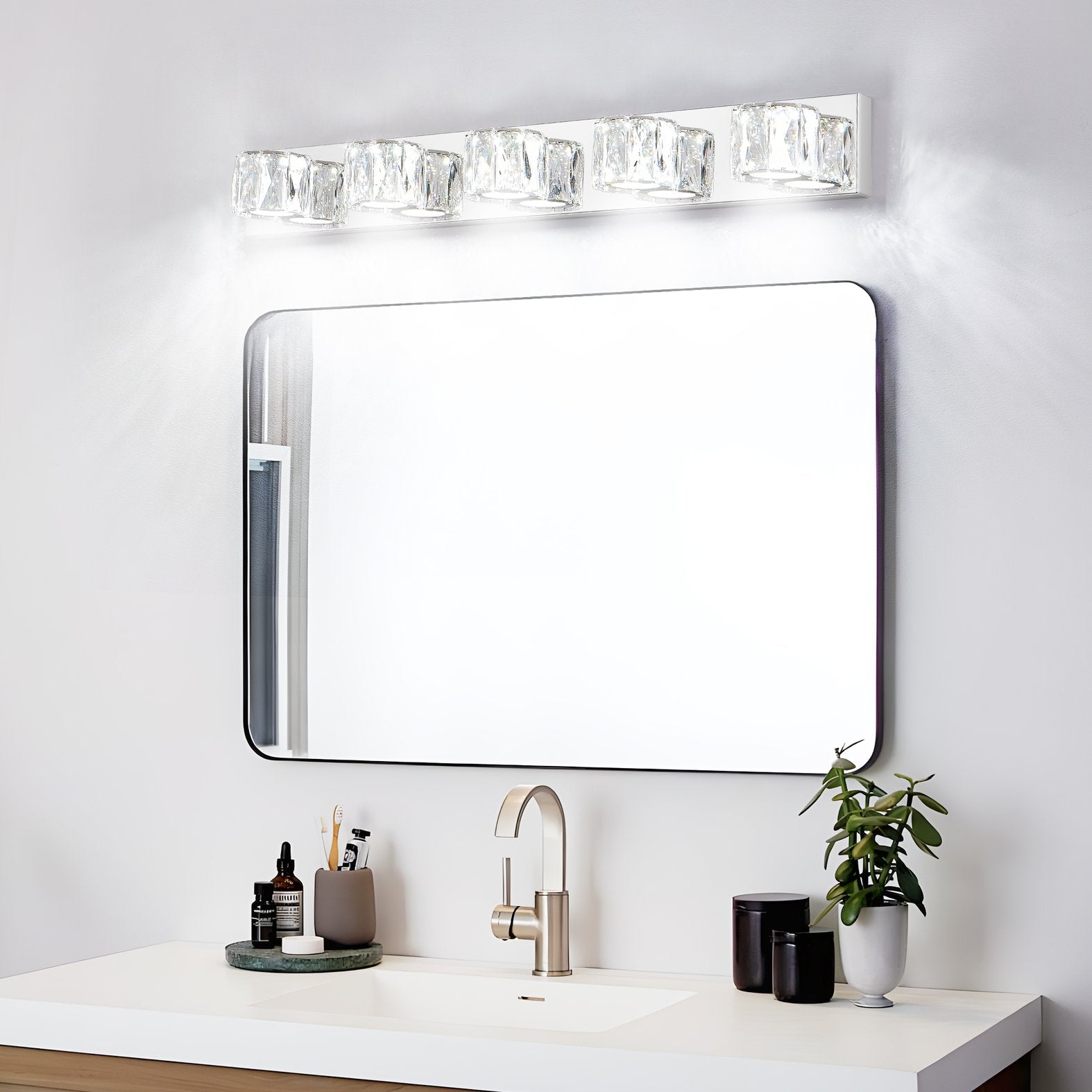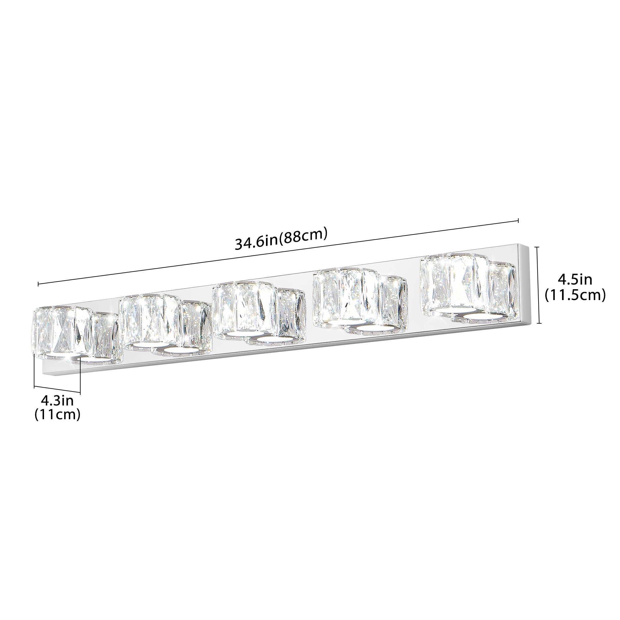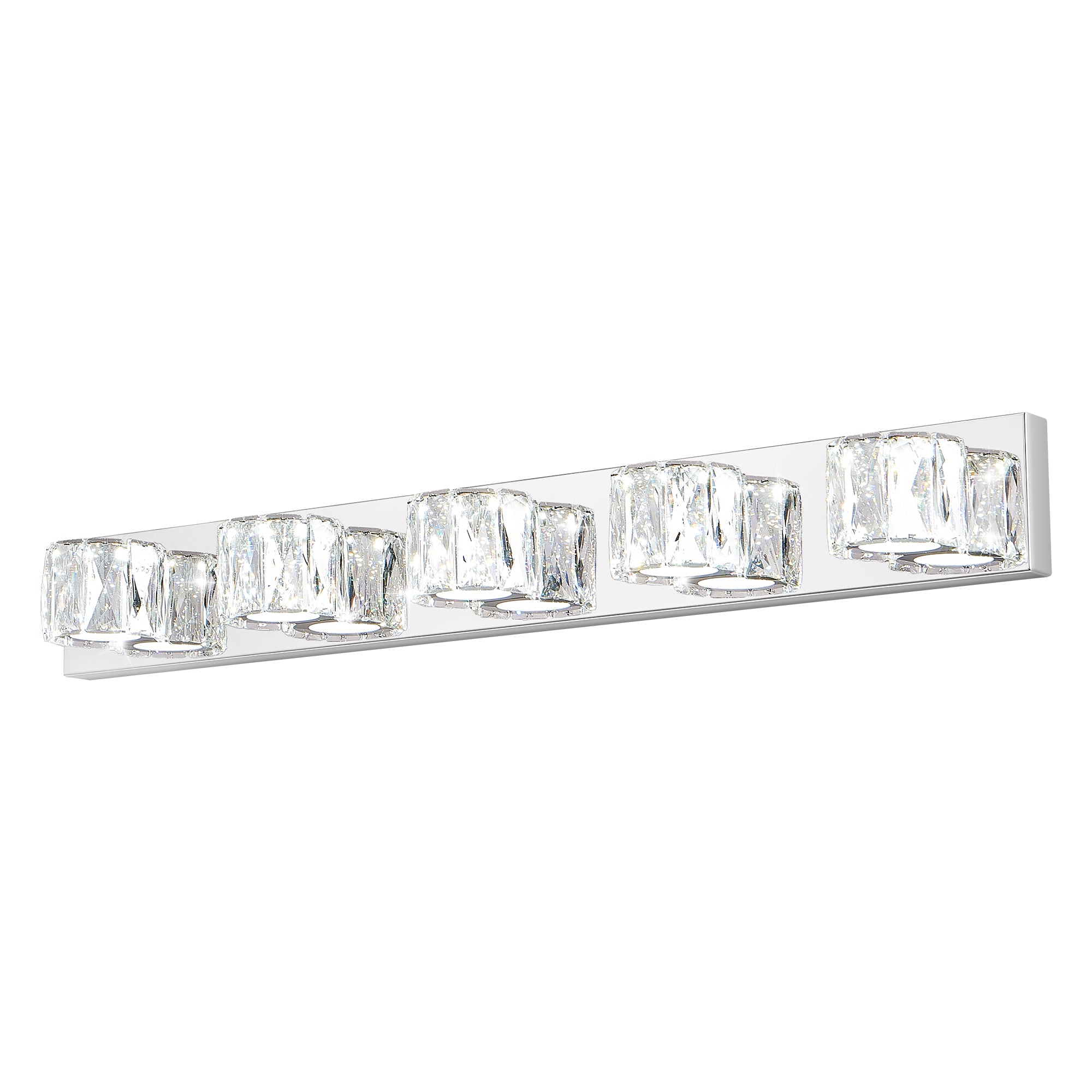 Elevate your bathroom, bedroom, or hallway with this sleek, modern wall sconce that blends sparkling crystal accents with a clean chrome finish. Designed to provide bright, energy-efficient illumination while serving as an elegant focal point, this 5-light LED vanity fixture adds contemporary glamour and practical task lighting to vanities, mirrors, and transitional spaces.