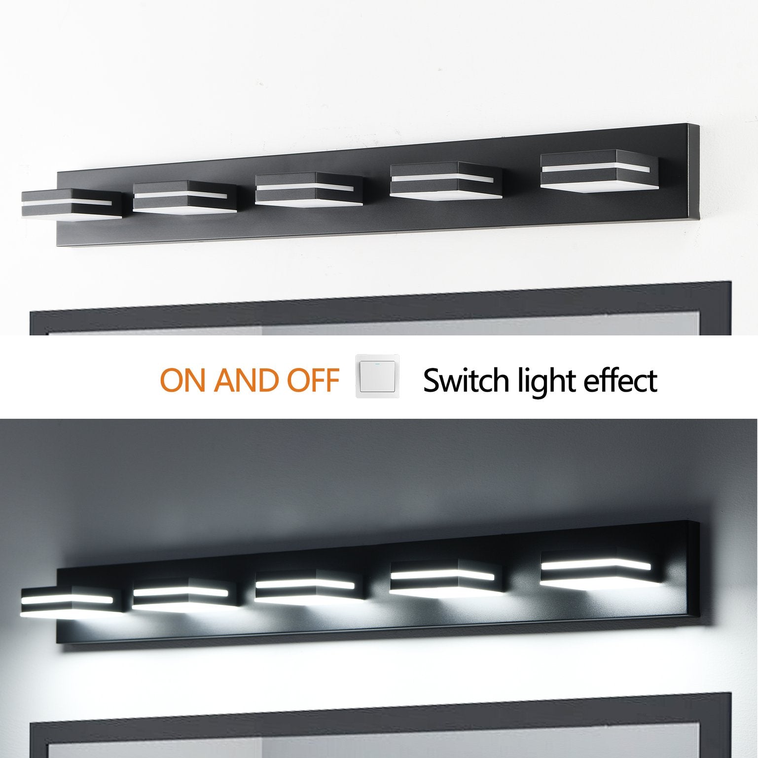 Add a touch of contemporary elegance to your bathroom, vanity, or hallway with this sleek black 5-light LED wall sconce. Designed for clean, minimalist spaces, it offers uniform, shadow-free illumination ideal for makeup application, grooming, or ambient lighting. Built from durable, rust-resistant metal and fitted with energy-efficient LEDs, this fixture combines long-lasting performance with low operating costs and effortless installation.