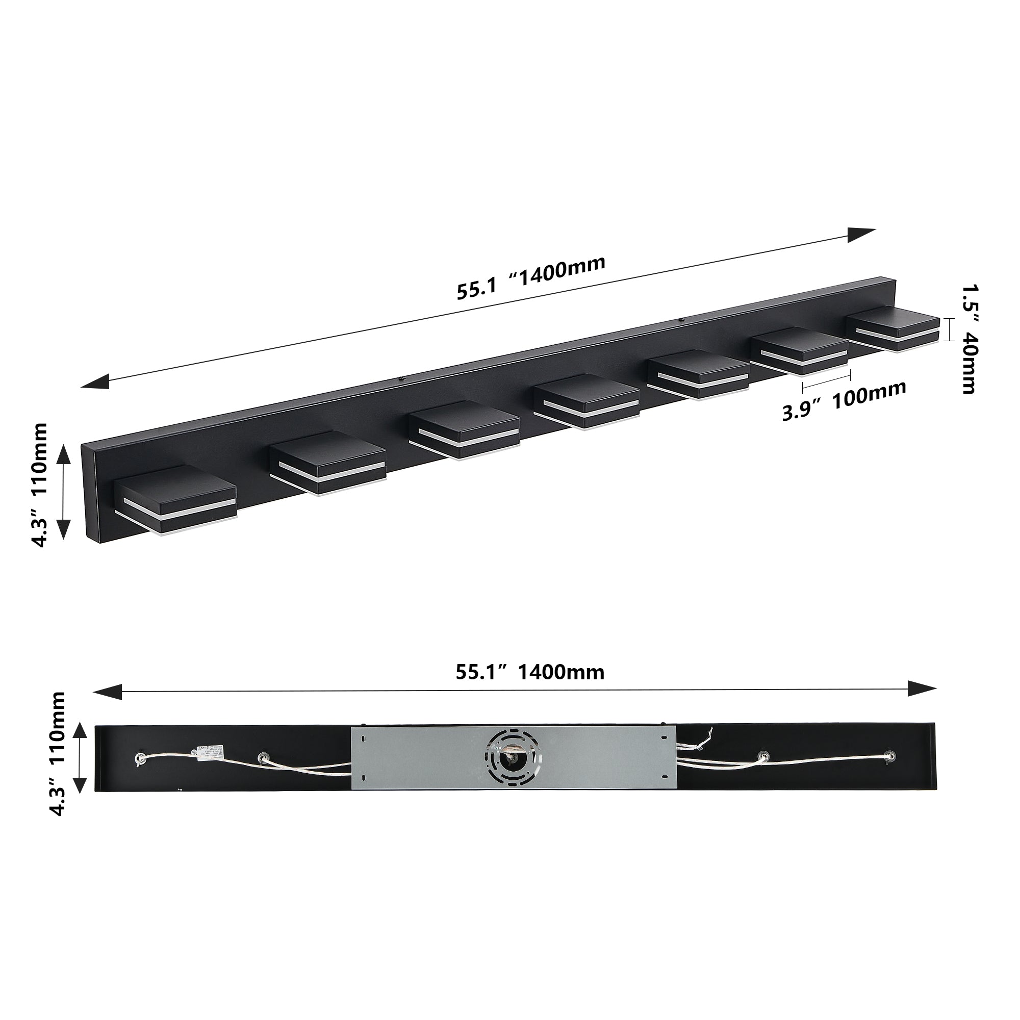 - Dimensions: 57.09 L x 7.09 W x 5.51 H (inches) — prominently sized to span most standard mirrors and vanities for balanced, shadow-free light.