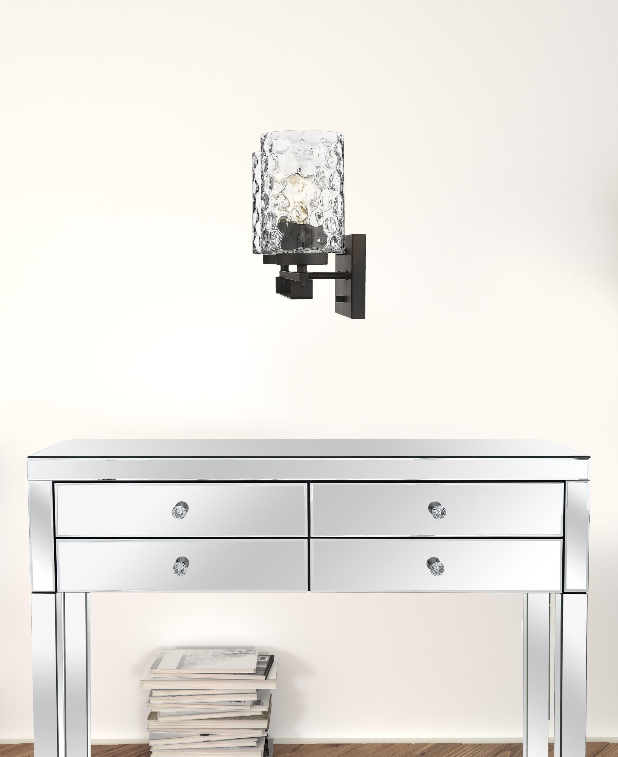 - Updated and modern hanging double light wall sconce.