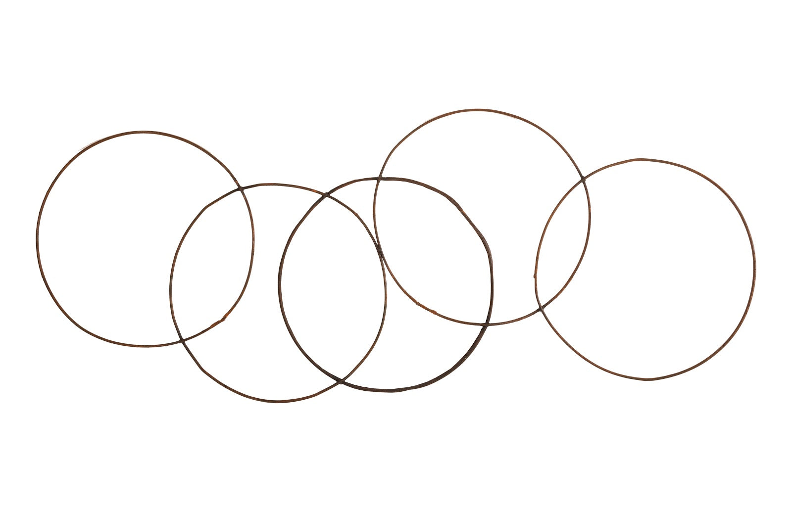 The clean lines of the slim circles flowing playfully to create the Olympic Five-Ring Wall Hanging makes this a perfect accent piece for contemporary, modern farmhouse, and mid-century modern interiors. Abstractly rendered in metal that has been salvaged from reclaimed oil drum rings, not only is this decorative wall sculpture whimsical, it is sustainable. This is the smaller of the two pieces of wall art we offer in this collection, the larger one constructed of 27 rings. Each of these reflect the ethos that Phillips Collection personifies: modern organic.