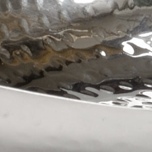 Brighten any tabletop with this elegant triple bowl—hammered stainless steel paired with an antique brass orchid handle creates a refined blend of modern texture and vintage charm. Ideal as a decorative accent for a traditional home office, vanity, or entryway, it organizes small items while adding sculptural interest to your space. Intended for decoration only.