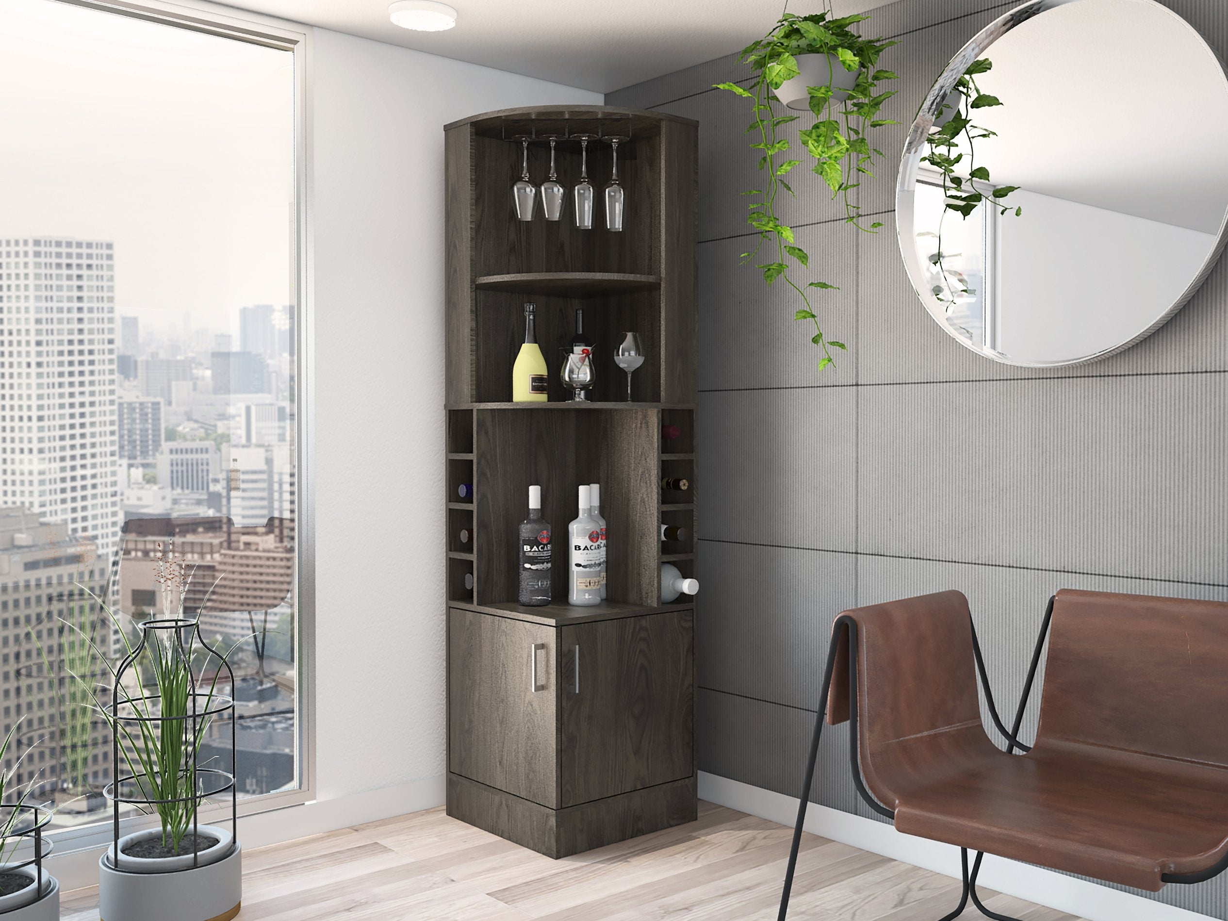 - Set includes: One (1) bar cabinet — ready to place in living rooms, dining areas, or home bars