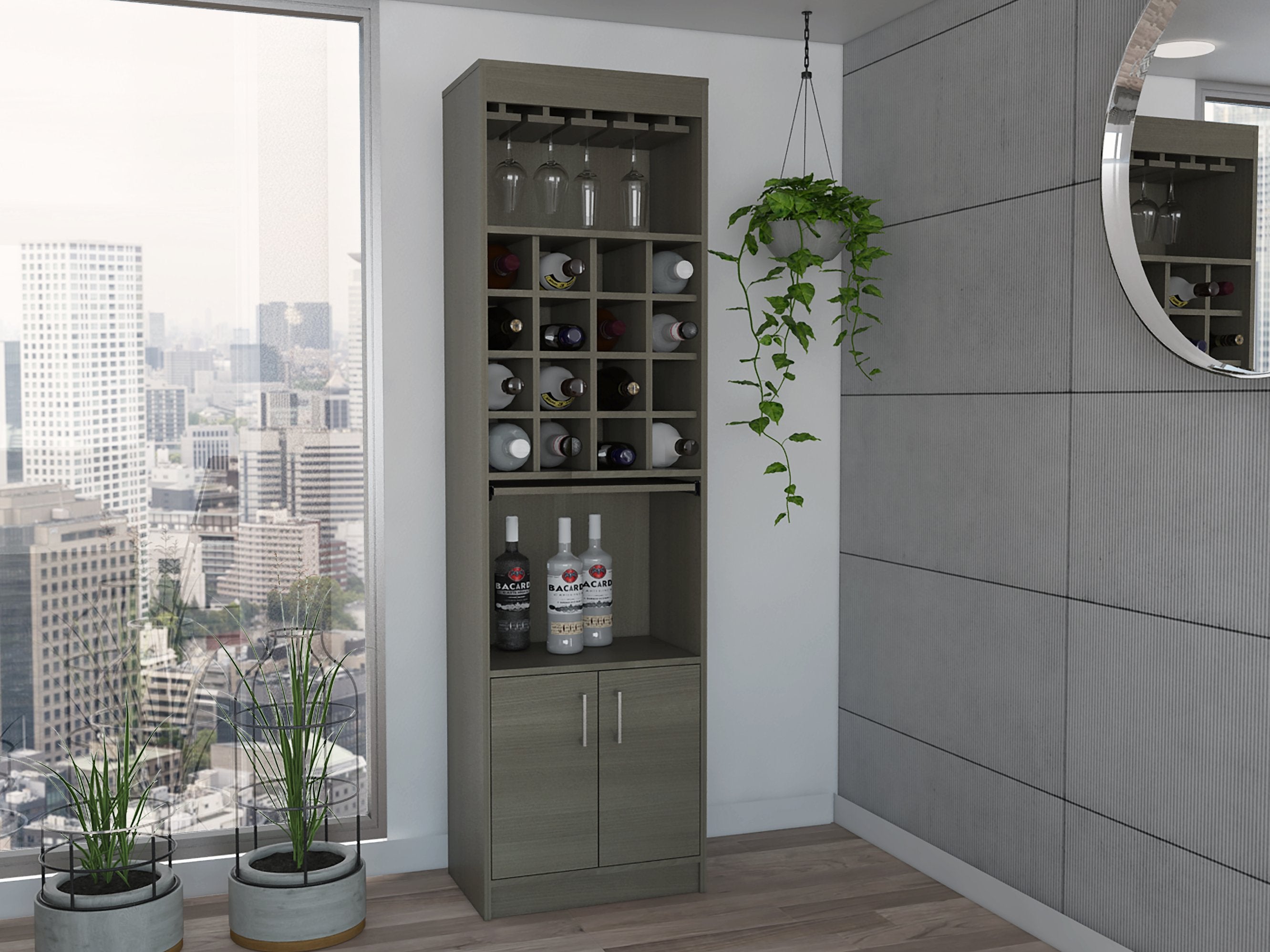 Bring home a stylish and functional centerpiece for your entertaining space with this Smokey Oak Kava Bar Cabinet. Thoughtfully designed to organize spirits, glassware, and bar tools, it blends contemporary lines with smart storage — including a retractable concealable serving tray for discreet prep and service. Ideal for living rooms, dining areas, or home bars, this cabinet keeps everything within reach while maintaining a tidy, polished look.