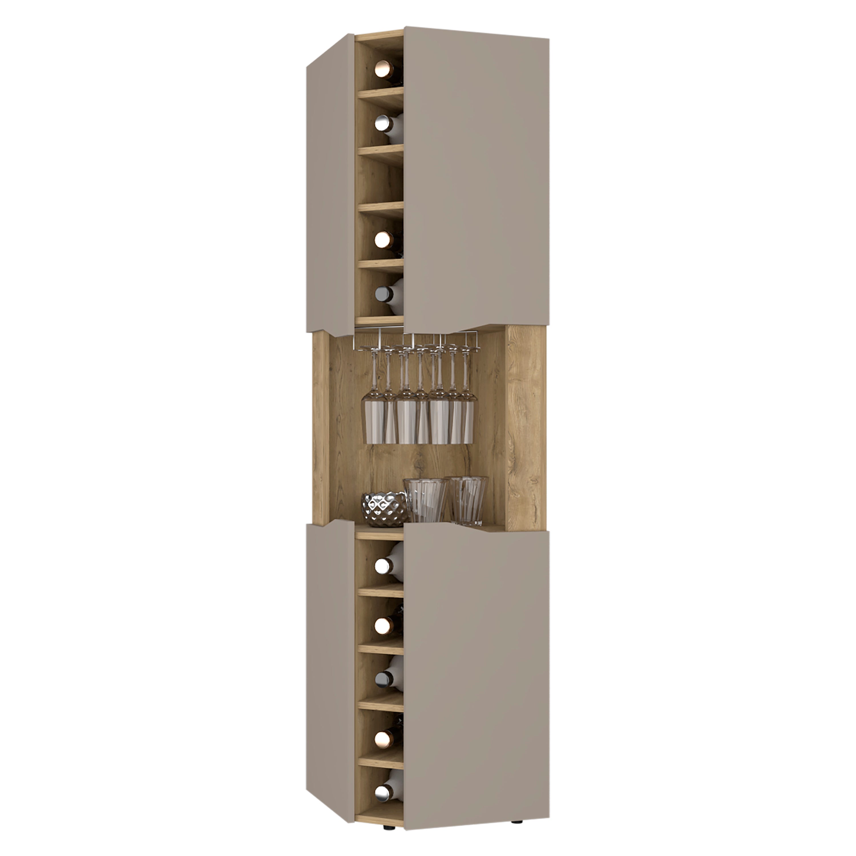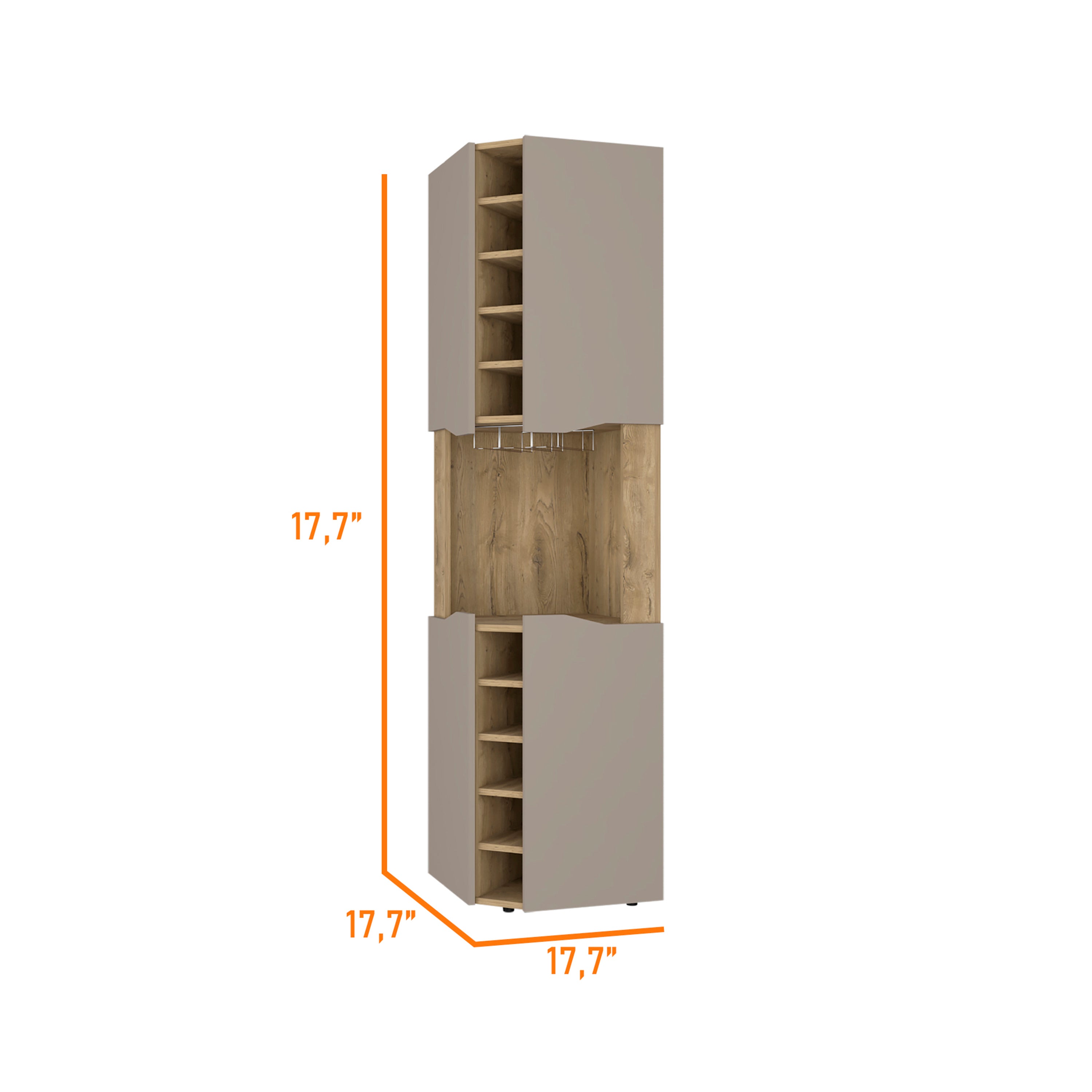 Elevate your entertaining space with this elegant Macadamia and Taupe 10-Bottle Bar Cabinet — a compact, stylish solution that blends organized bottle storage with versatile concealed compartments. Thoughtfully designed for both form and function, it provides dedicated wine storage, convenient glass hanging, and multiple cabinets to keep barware and supplies neatly out of sight.