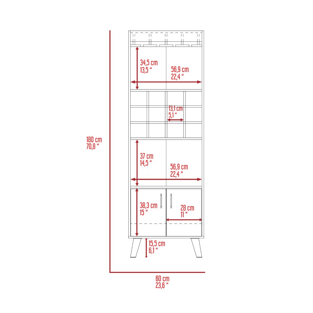 - Bottle Storage: Twelve built-in liquor bottle cubbies to display and store standard-size bottles securely.