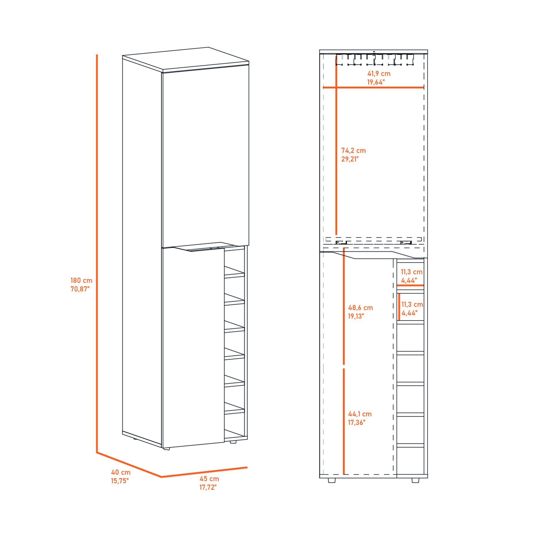 - Dimensions: 70.87" H x 17.72" W x 15.75" D — compact vertical footprint for narrow spaces