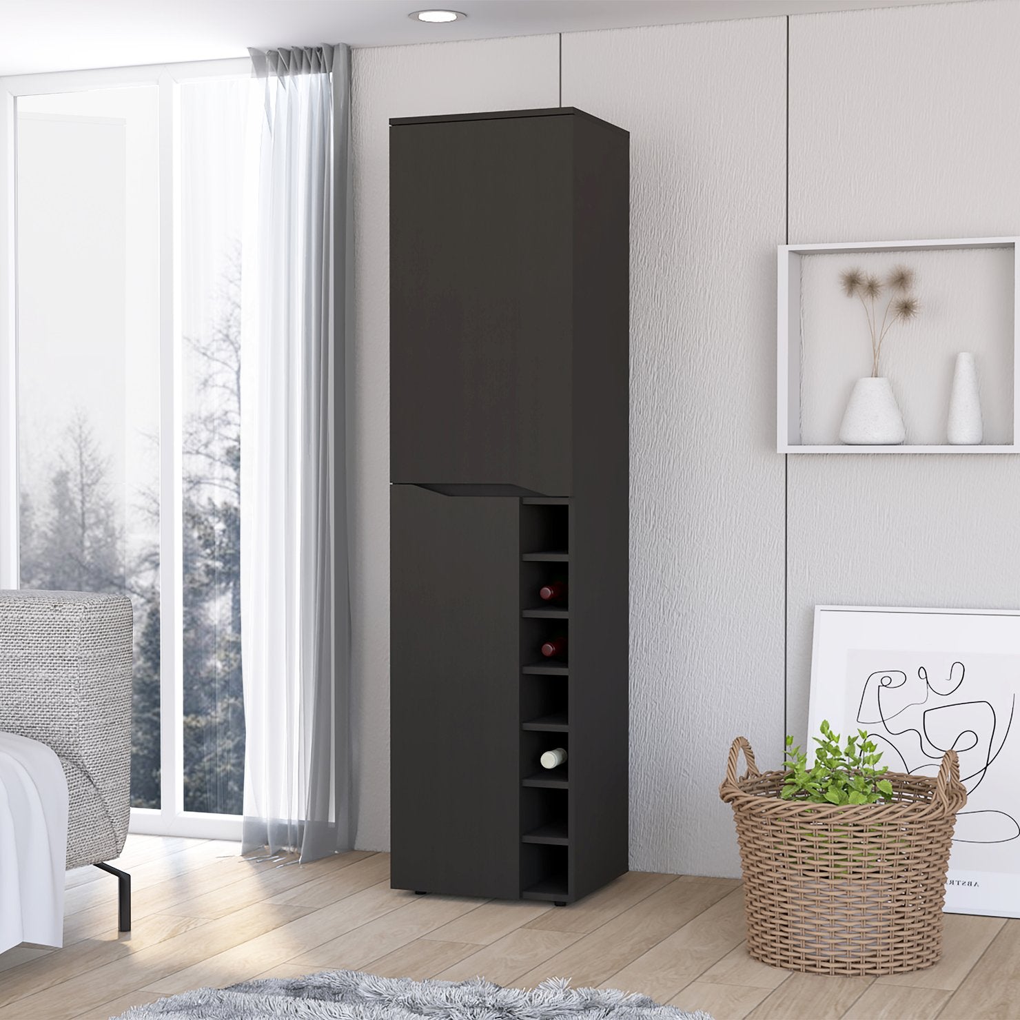 Elevate your entertaining space with this sleek Wenge bar cabinet, designed to blend modern styling with practical storage. Its tall, narrow profile makes it ideal for apartments, dining rooms, or home bars where floor space is limited but organization and display matter. Thoughtful features like wine cubbies, adjustable shelving, and a built-in cup rack keep glassware and bottles accessible while maintaining a tidy, stylish look.