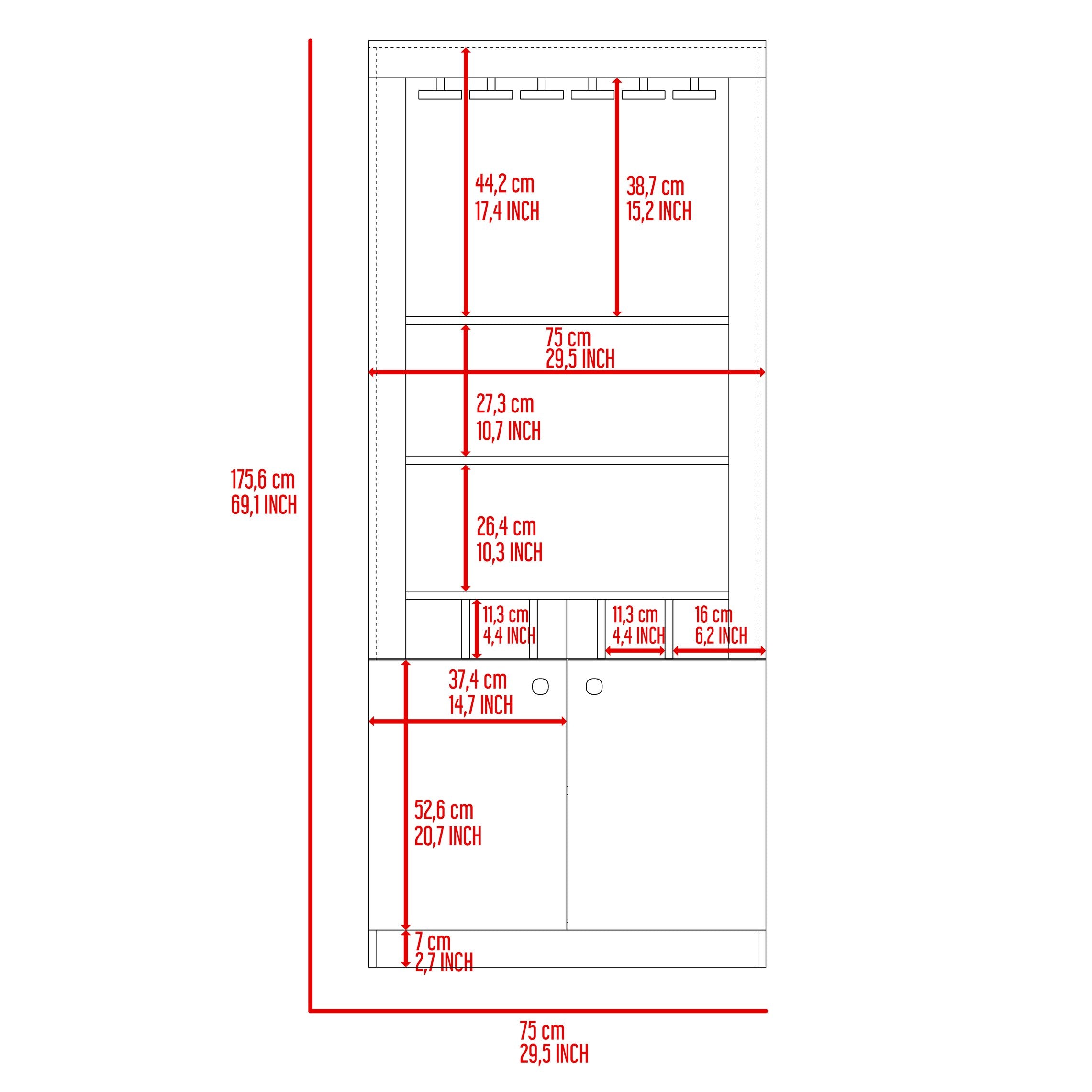 - Overall dimensions: 69.1" H x 29.5" W x 14.4" D — slim profile ideal for hallways, dining rooms, or compact living areas.