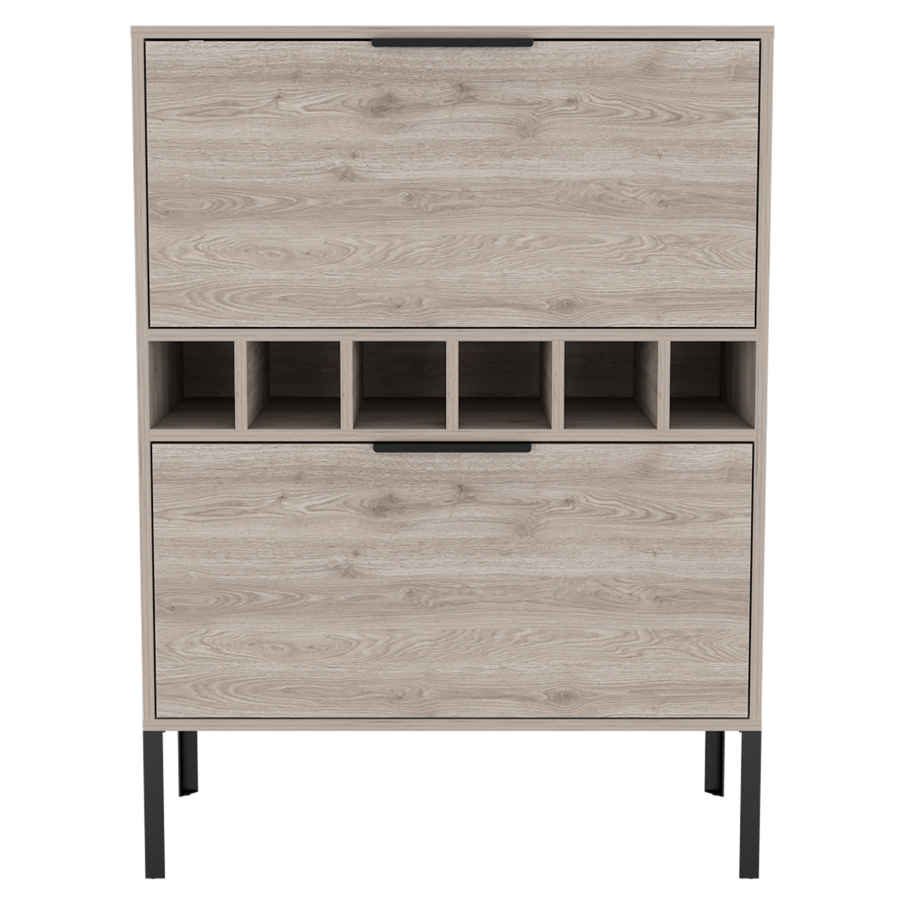 - Storage Configuration: Two doors reveal 4 internal shelves plus 6 wine cubbies for organized bottle and glass storage