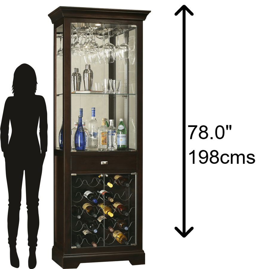 - This transitional cabinet features an elegant flat-top pediment and cutout base. Four glass doors provide an opportunity to display glassware, wine, and spirits.