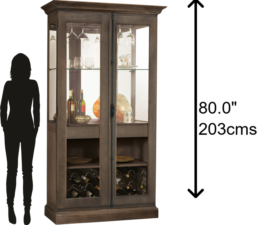 - One adjustable glass shelf in the upper cabinet and one adjustable wood shelf in the lower cabinet.