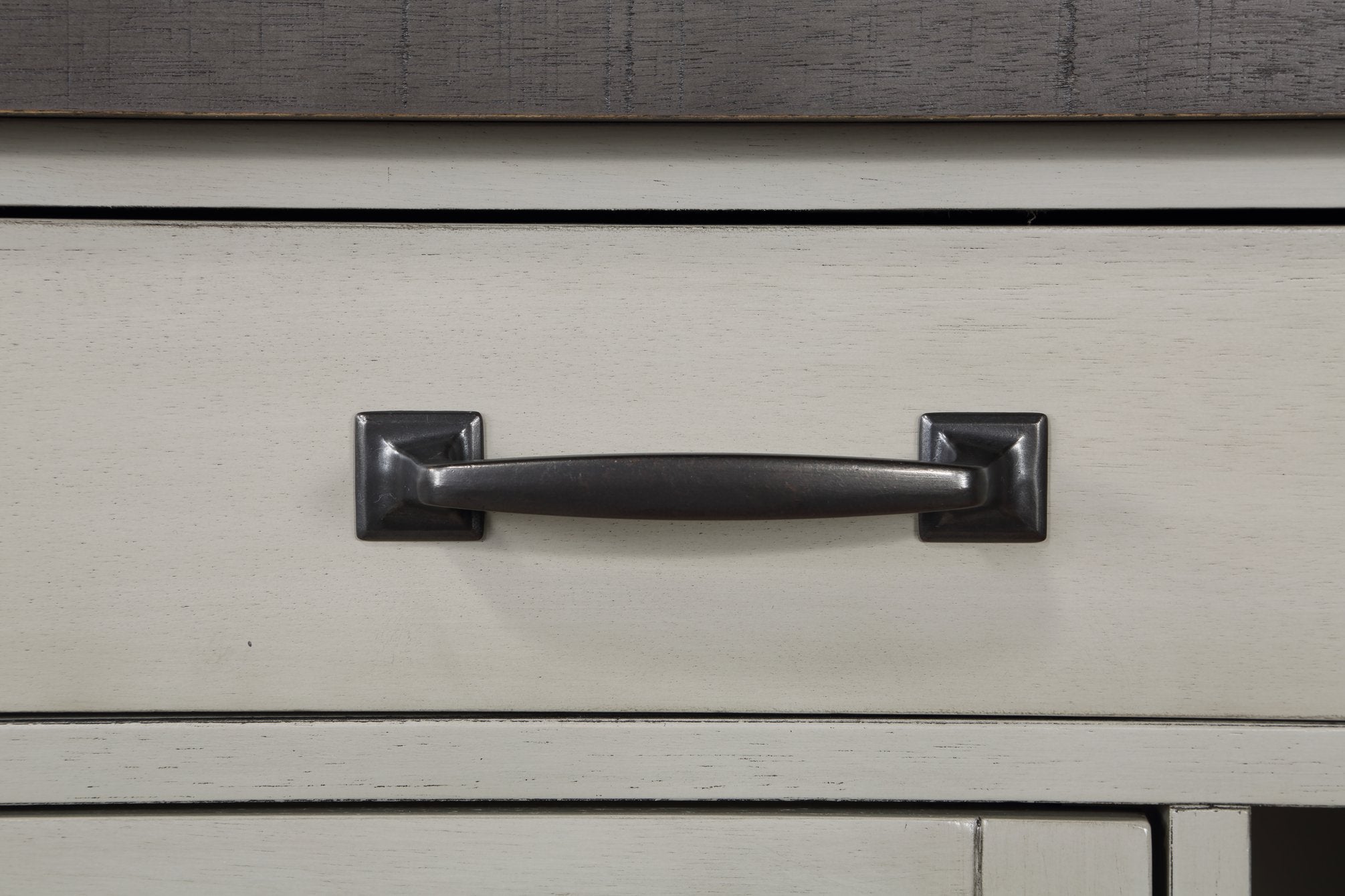 - Oil-rubbed nickel hardware enhances the furniture's modern aesthetic with its sleek, sophisticated design