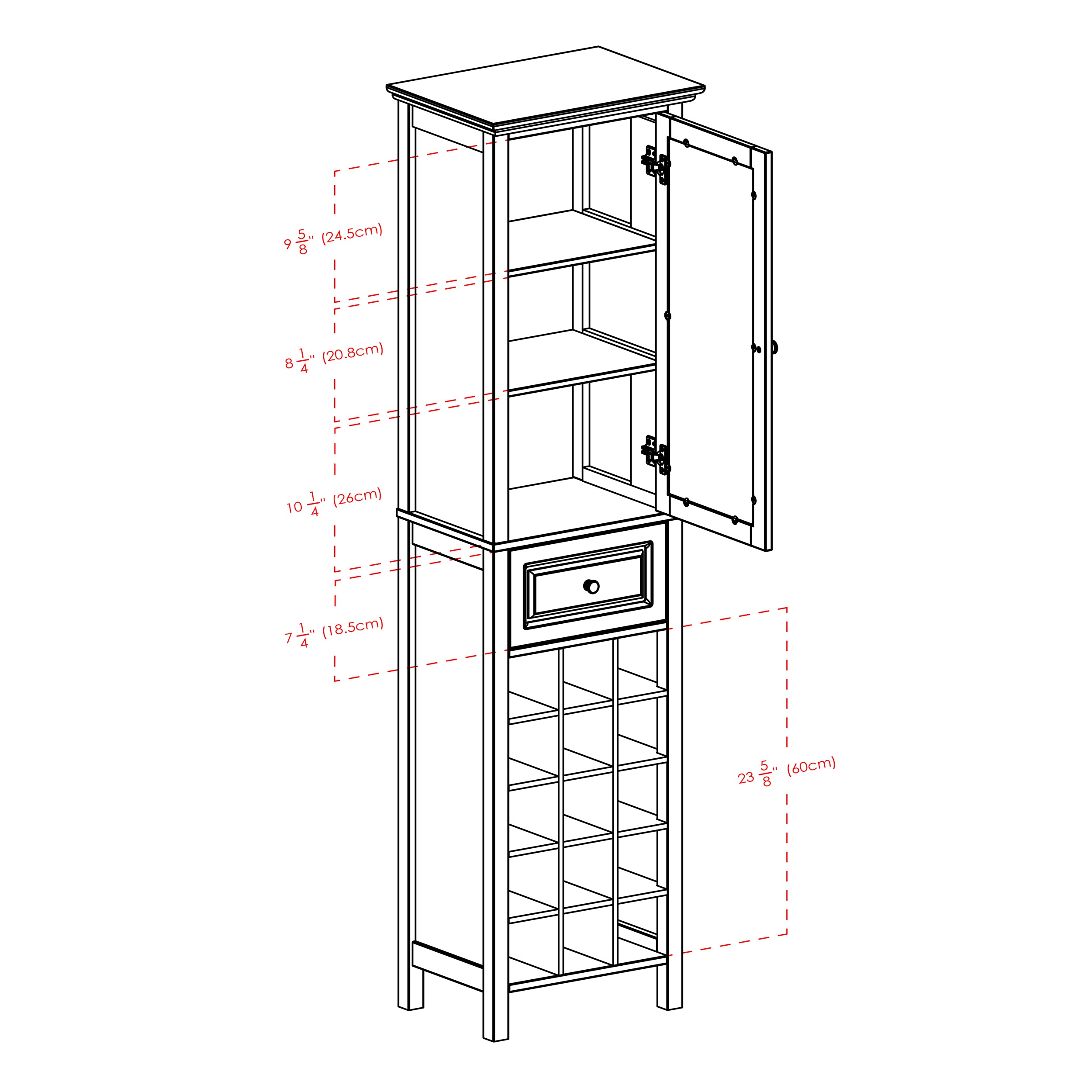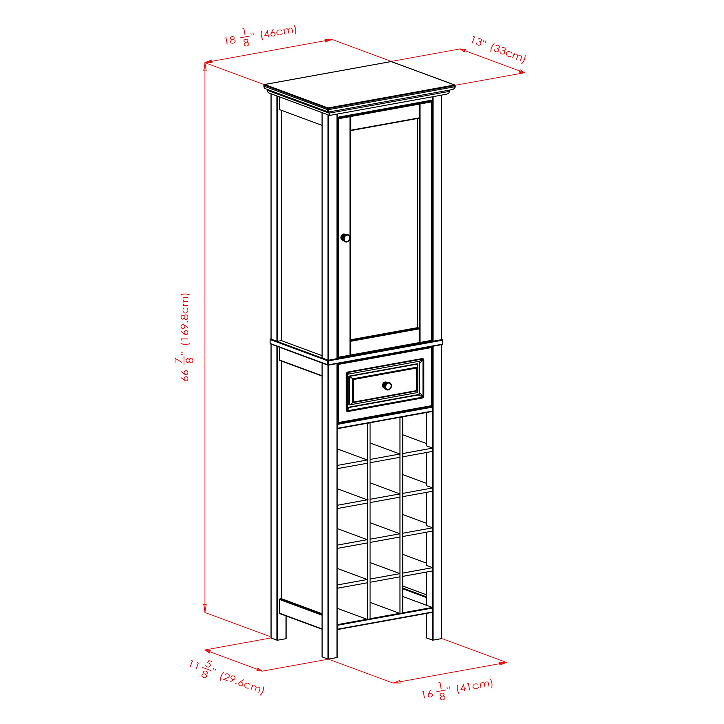 Handsome and elegant Burgundy Wine Tower is compact and perfect to storage your wine and accessories. This wine tower combines classic and contemporary style. Ample storage for your wine accessories. Overall size is 18.1"W x 12.9"D x 66.8"H.