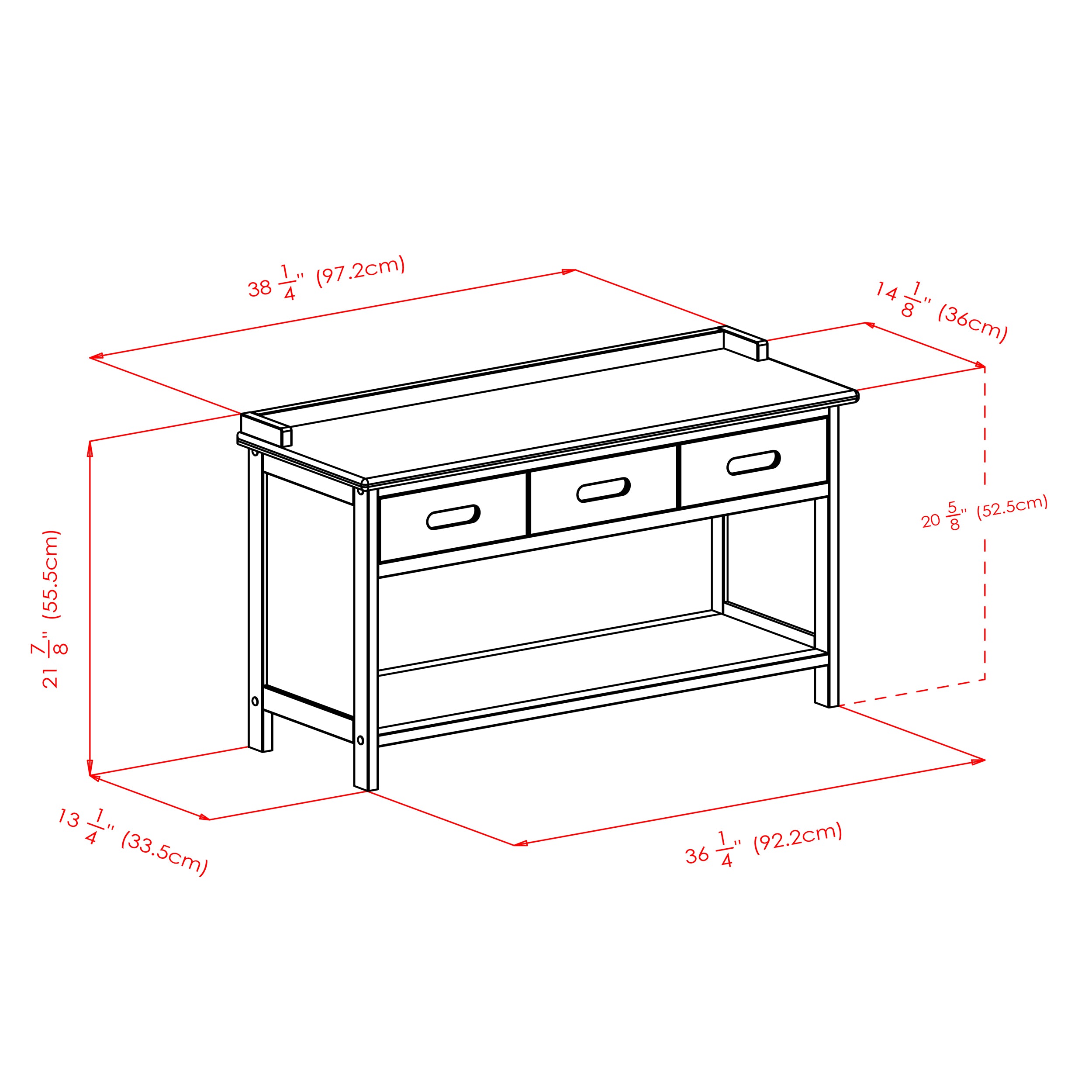 - 3 Drawers each inside dim is 9.45"W x 11.42"D x 3.85"H. Open shelf size 34.72'W x 12.87"D x 10.24"H