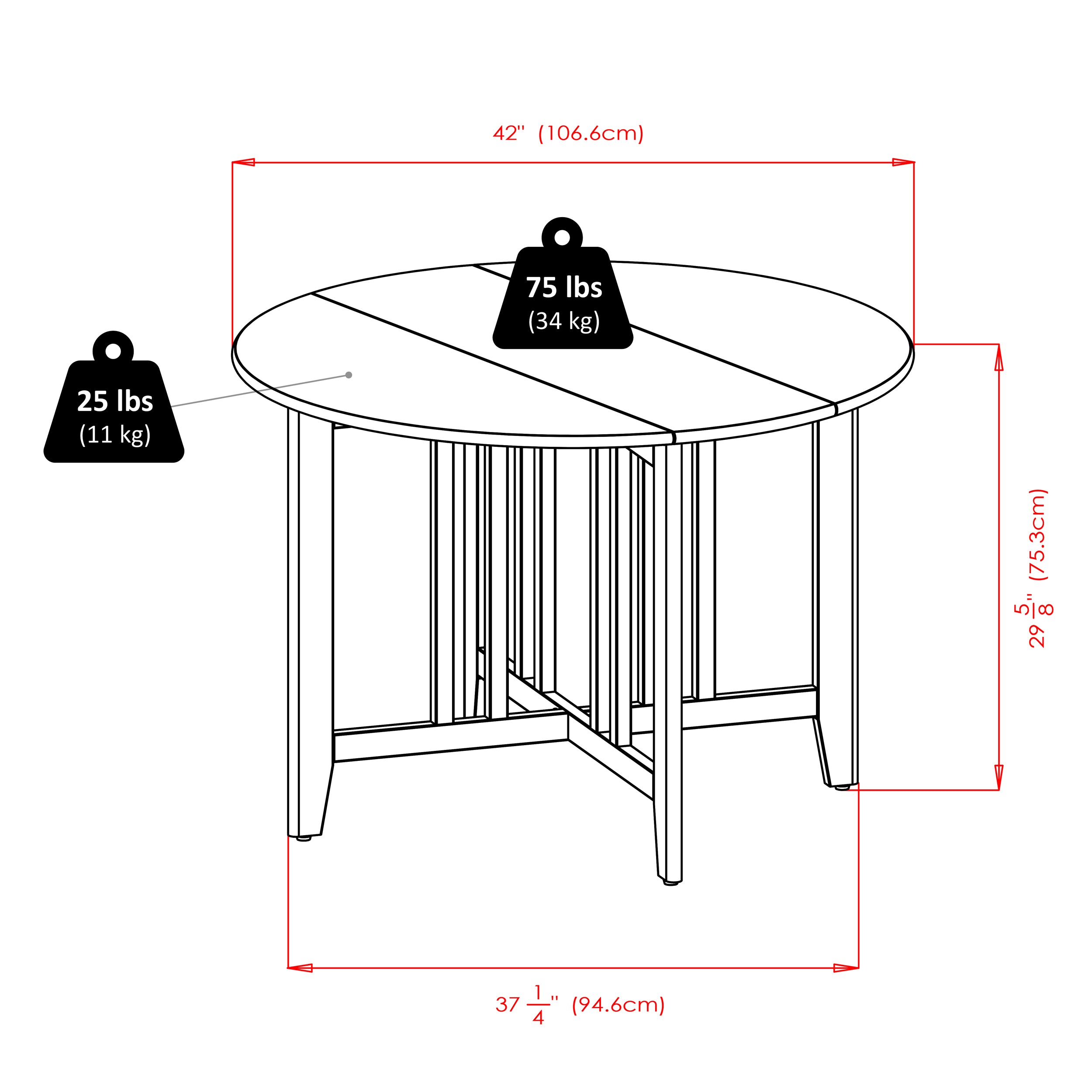 - Alamo Round Table fully opens at 42" x 29" Tall. Each Drop leaf is 42"Wide by 14.87" Deep.
