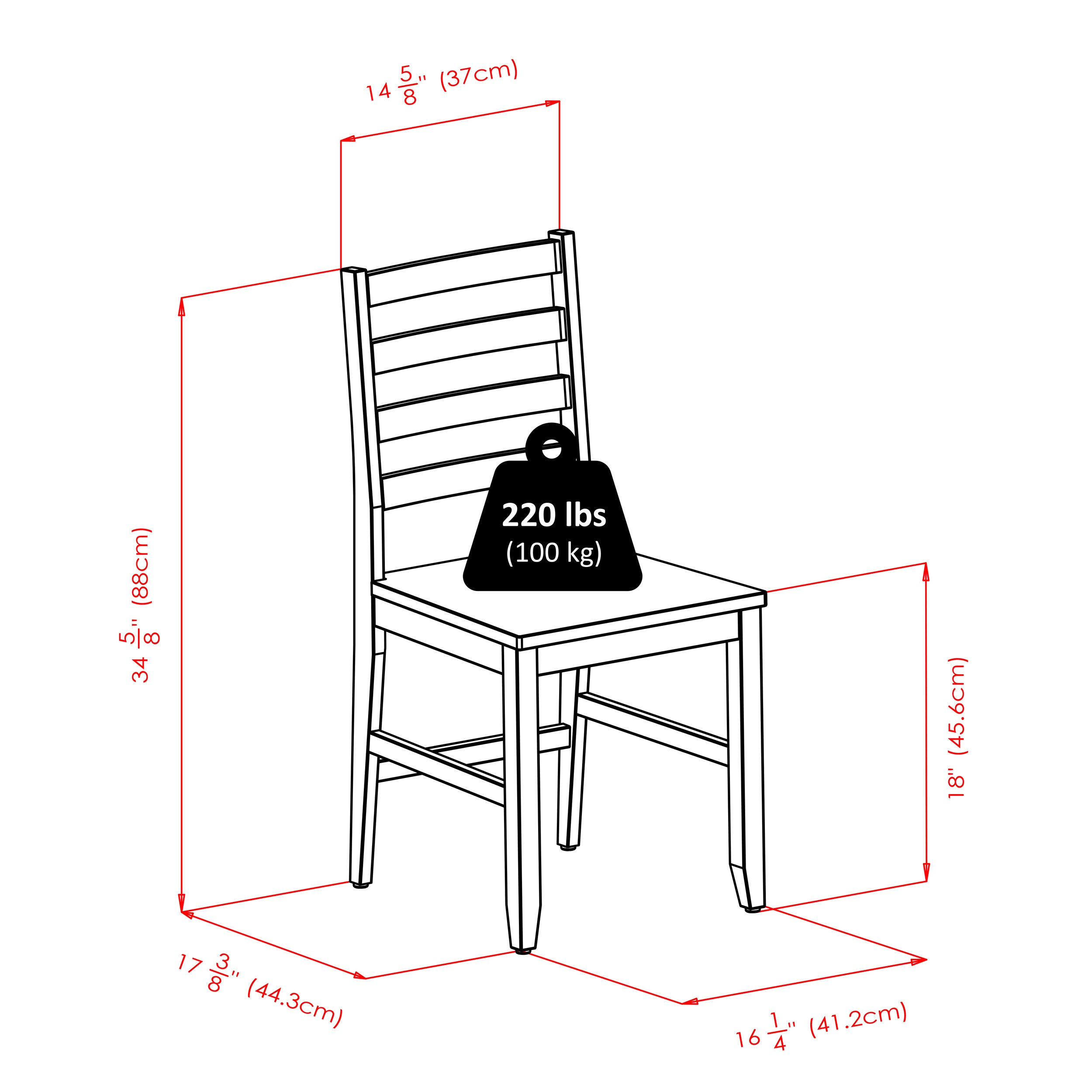 - This set comes with 4 ladder back chairs, each is 16.60"W x 20.50"D x 34.70"H. Seat height is 18".