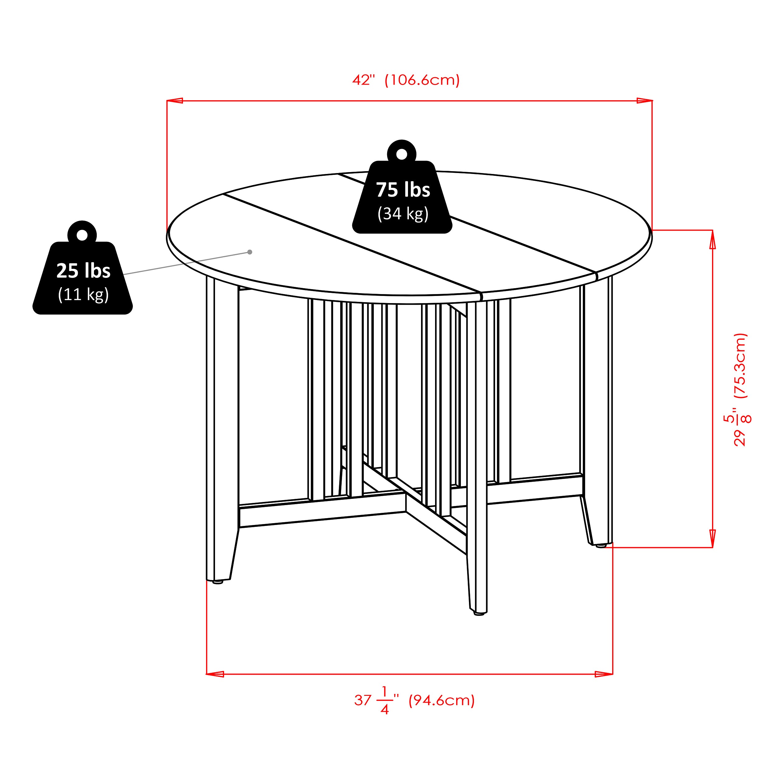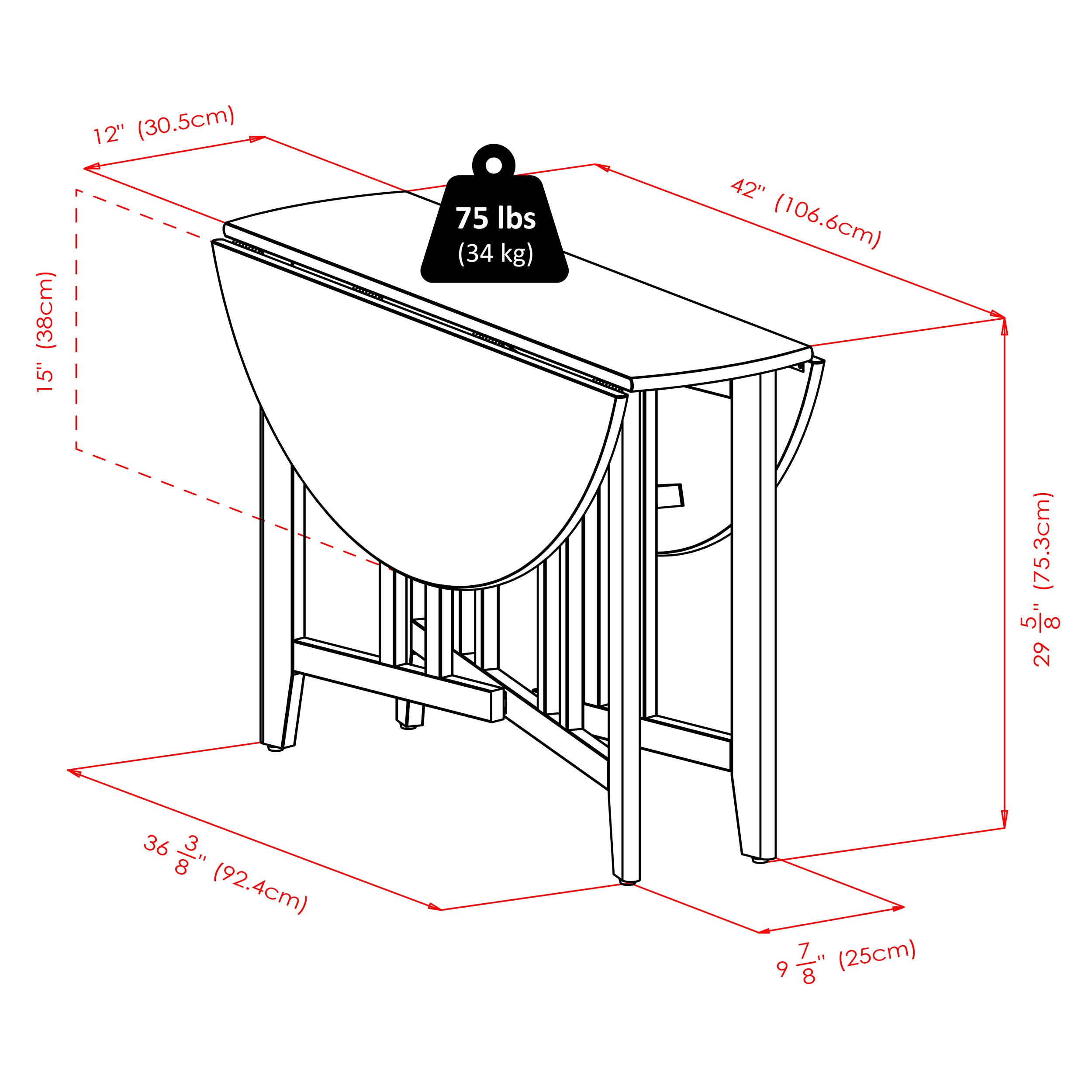 - Alamo Round Table fully opens at 42" x 29" Tall. Each Drop leaf is 42"Wide by 14.87" Deep.