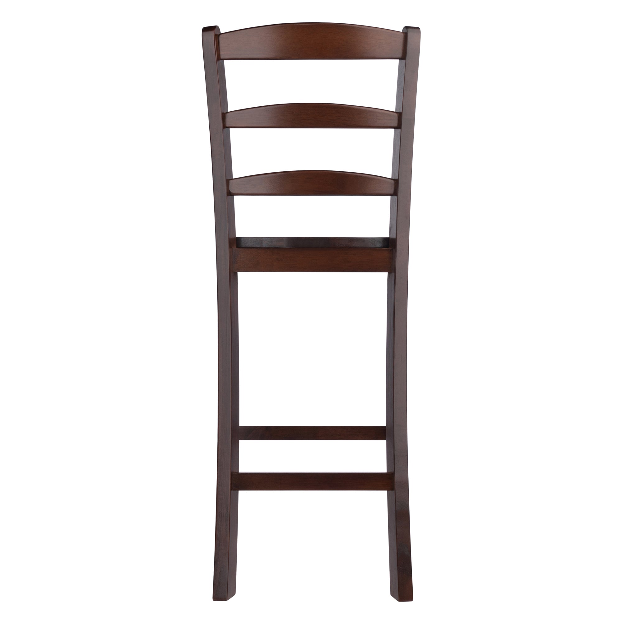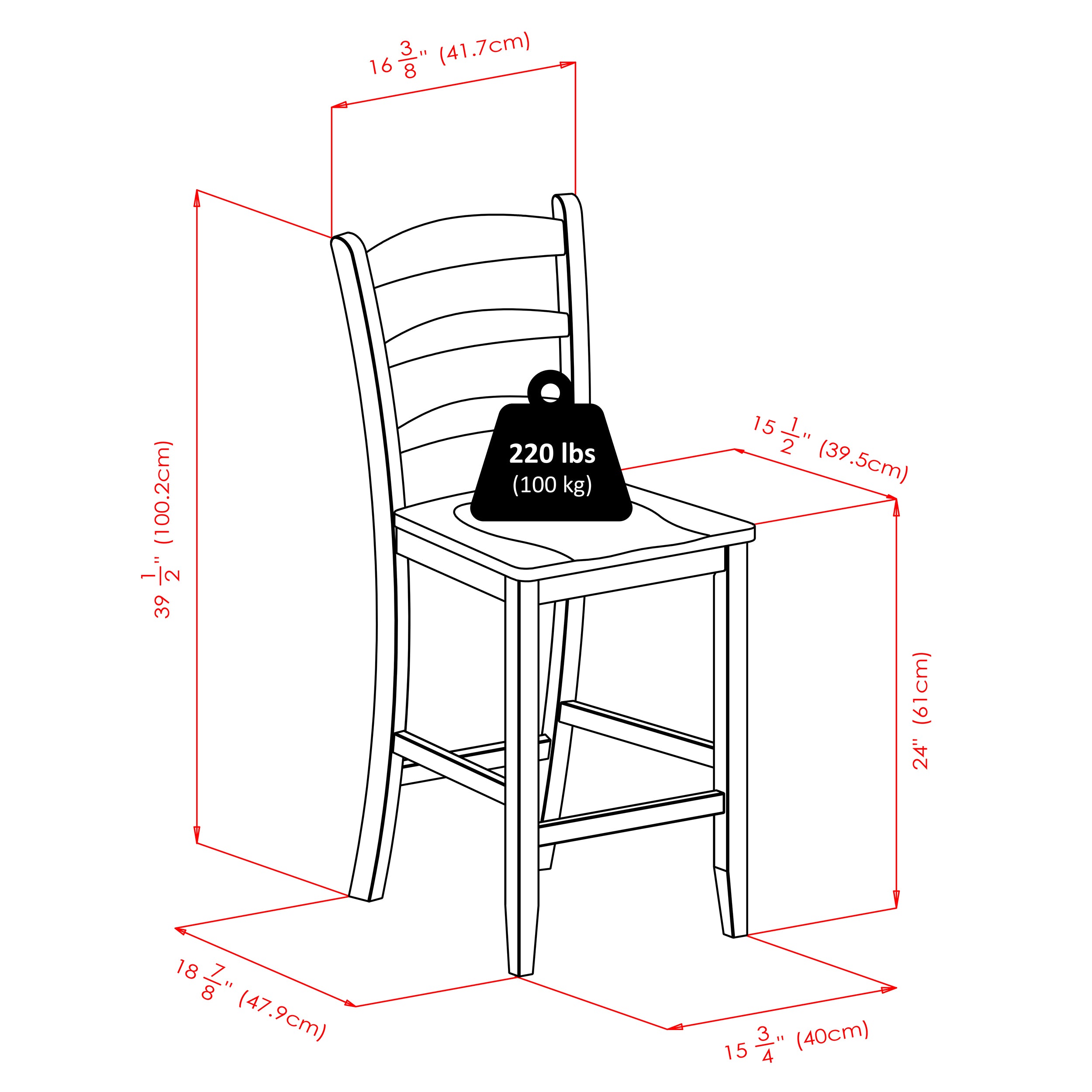 The simple and straight forward, yet classic look of the Benjamin 2-PC Ladder Back Counter Stool Set allows them to be used with a variety of decors from country to contemporary. Their design and rich walnut finish is a perfect match to high pub table.