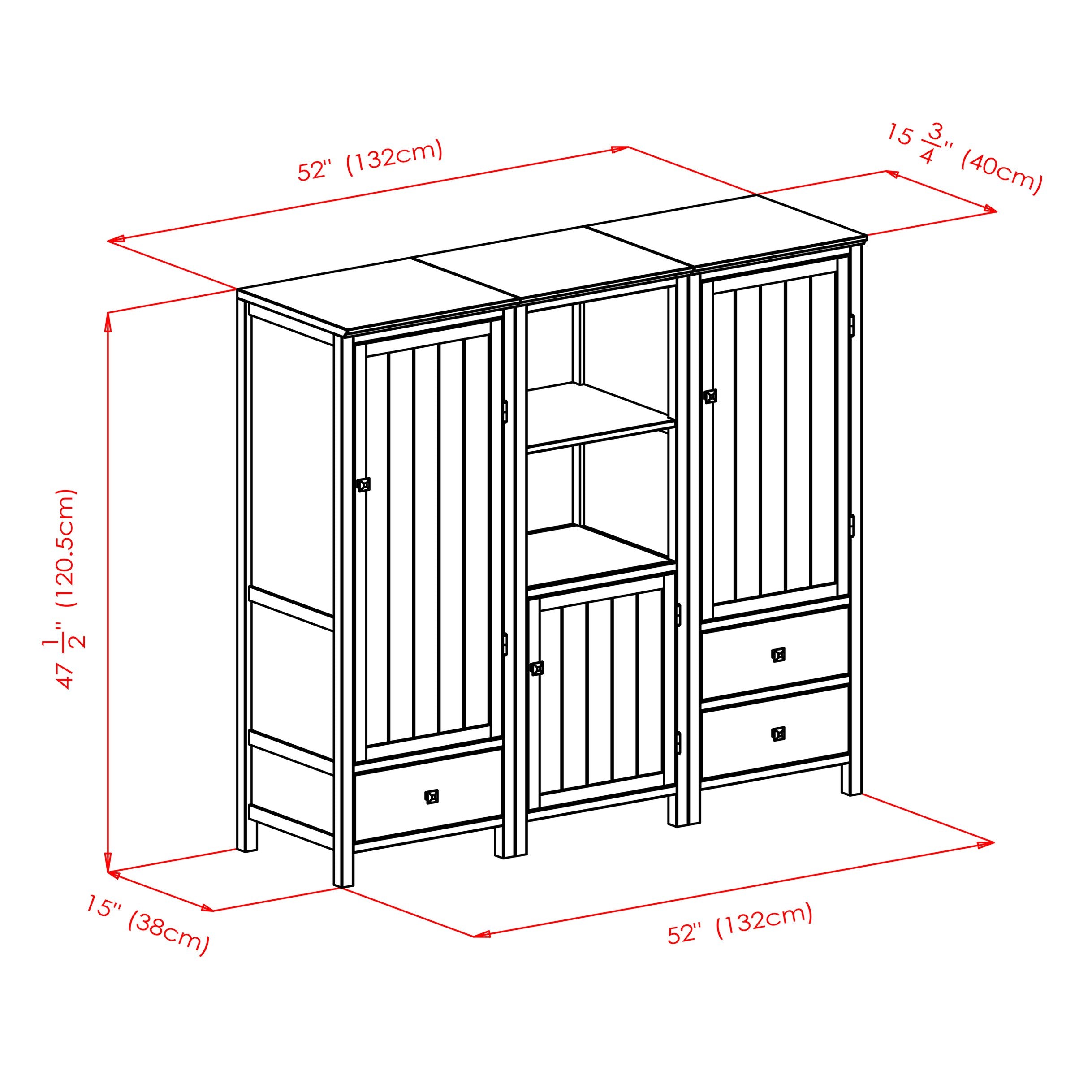 Create a beautiful wall of storage options with a French Country look and the modern convenience of the 3-piece Brooke Cupboard Set. The wainscoting panels in the cabinet doors and brushed silver cabinet and drawer pulls add an undeniable country charm that will change the look of any room. The first cupboard has a large cabinet (2 shelves) and a drawer; the second cupboard features two open storage sections with a lower cabinet (interior shelf); the third has a three-quarter cabinet (interior shelf) and two lower drawers. Constructed of solid and composite wood in Walnut finish.