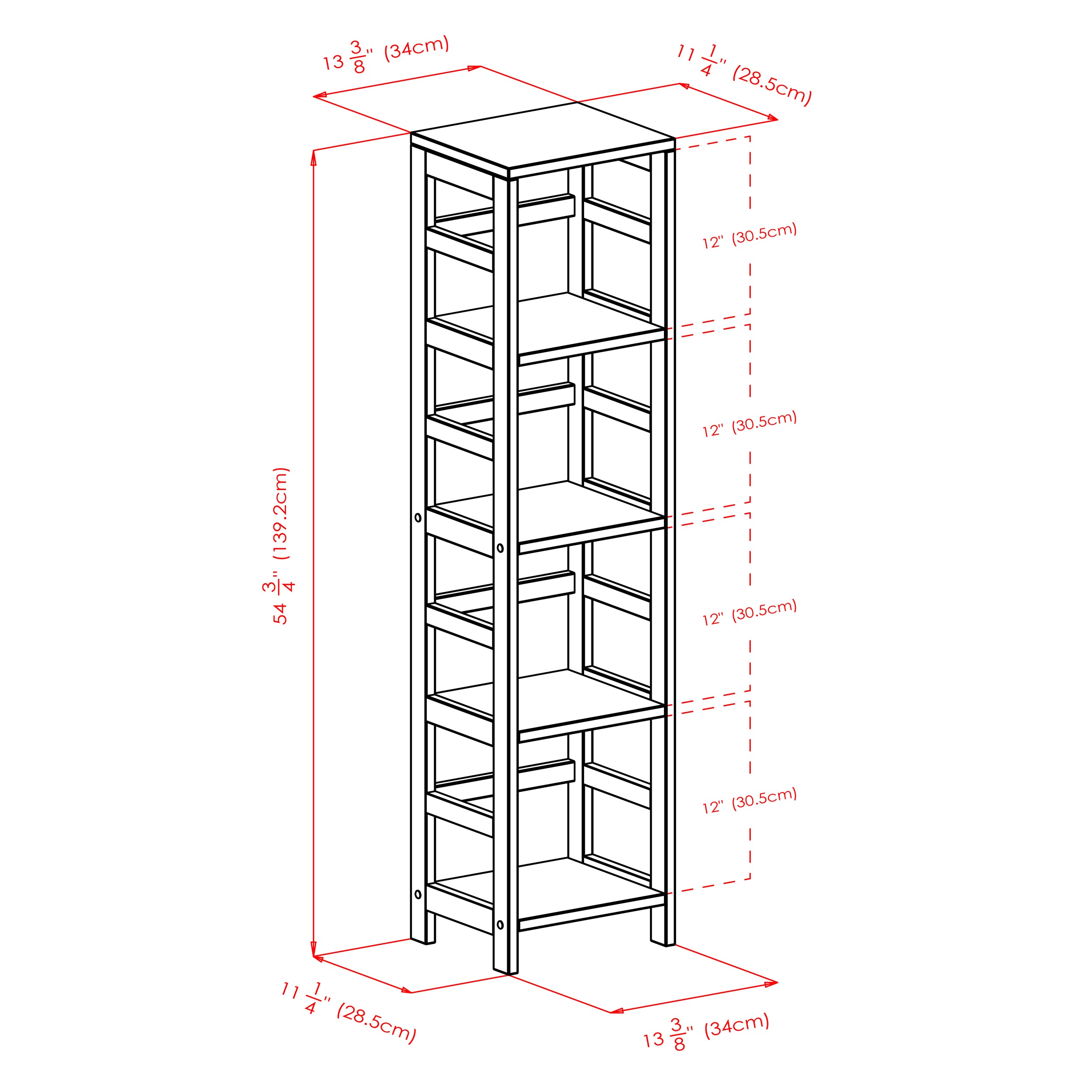 - Open airy 4-Section shelf assembled size is 13.39"W x 11.22"D x 54.80"H. Shelf clearance is 12".