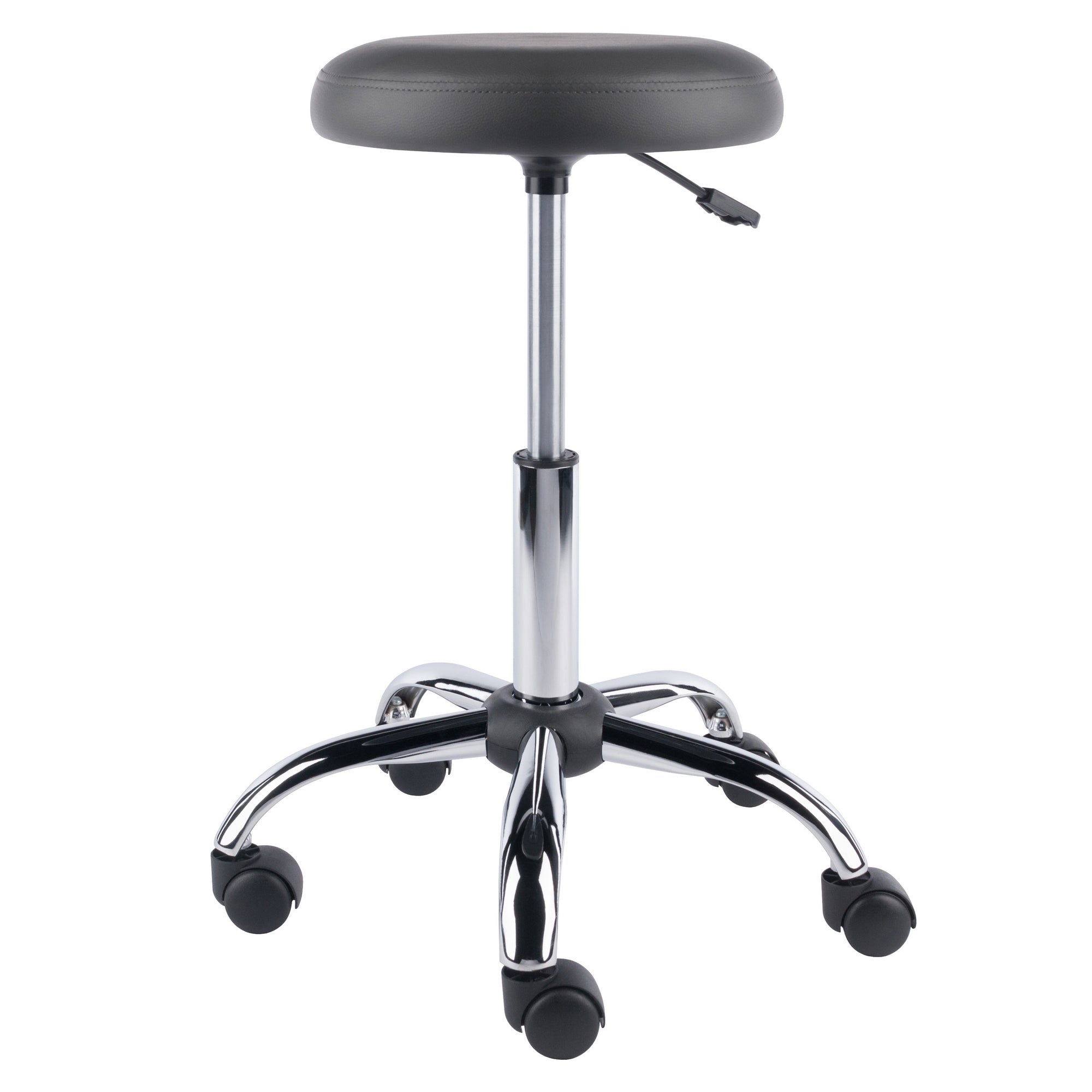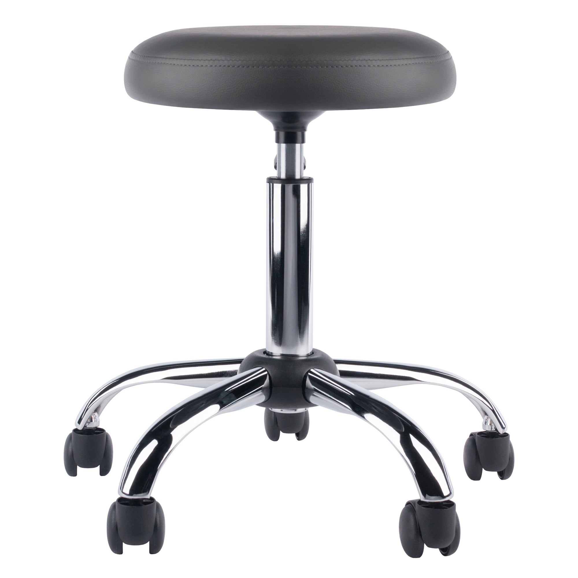 Move easily from one work station to another with the Clyde Adjustable Swivel Seat Stool. The hydraulic lift lets you raise and lower the seat from 19.3" to 25.6", while being able to rotate 360 degrees. The stool with chrome base rolls easily and smoothly on 5 hooded casters. And the comfortable cushion seat is made of charcoal faux leather. It's a real asset for multi-tasking at home or work.