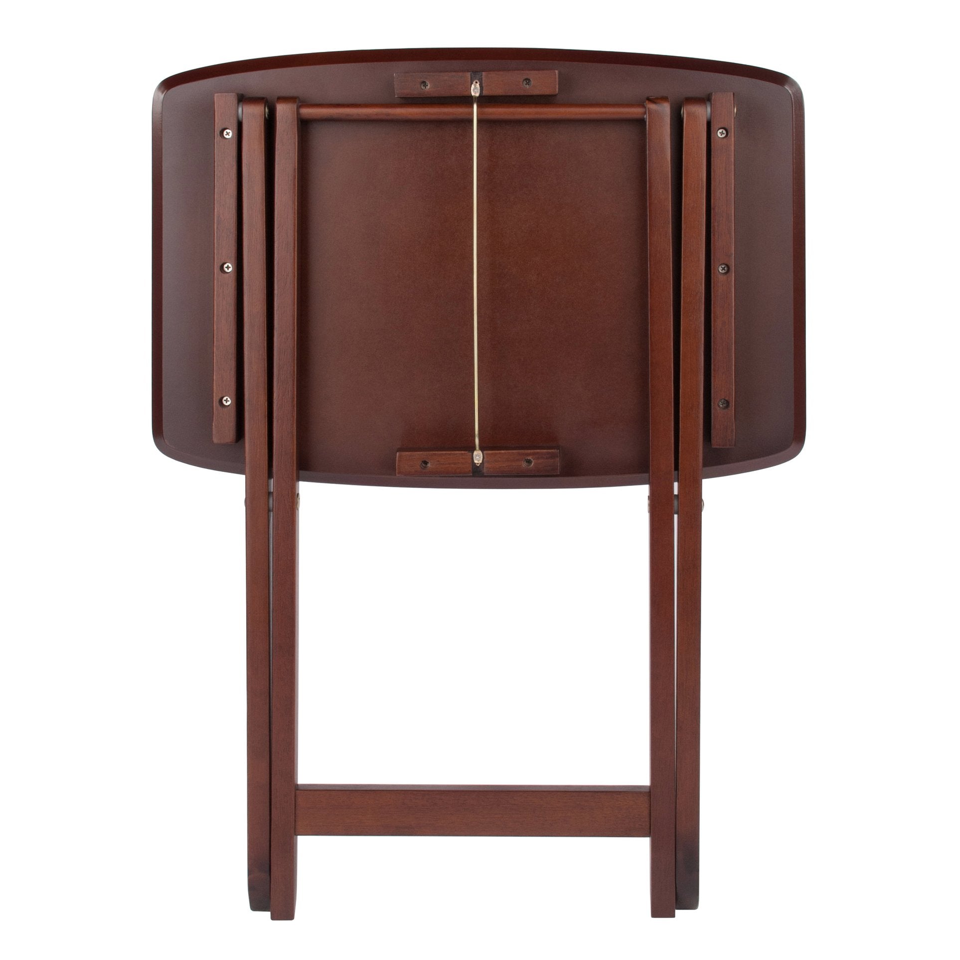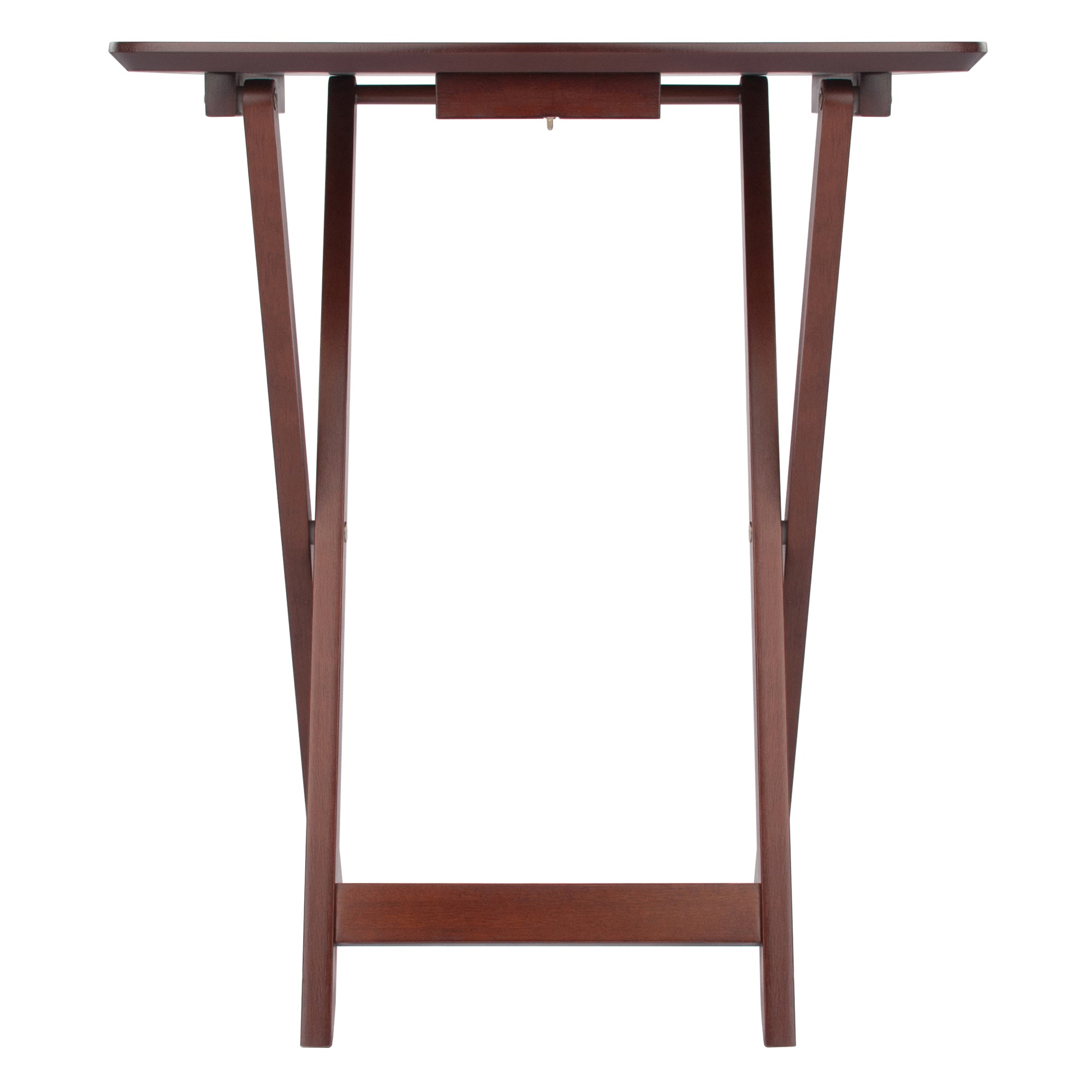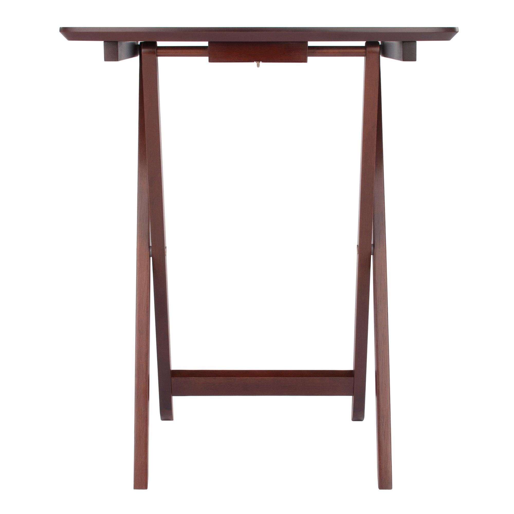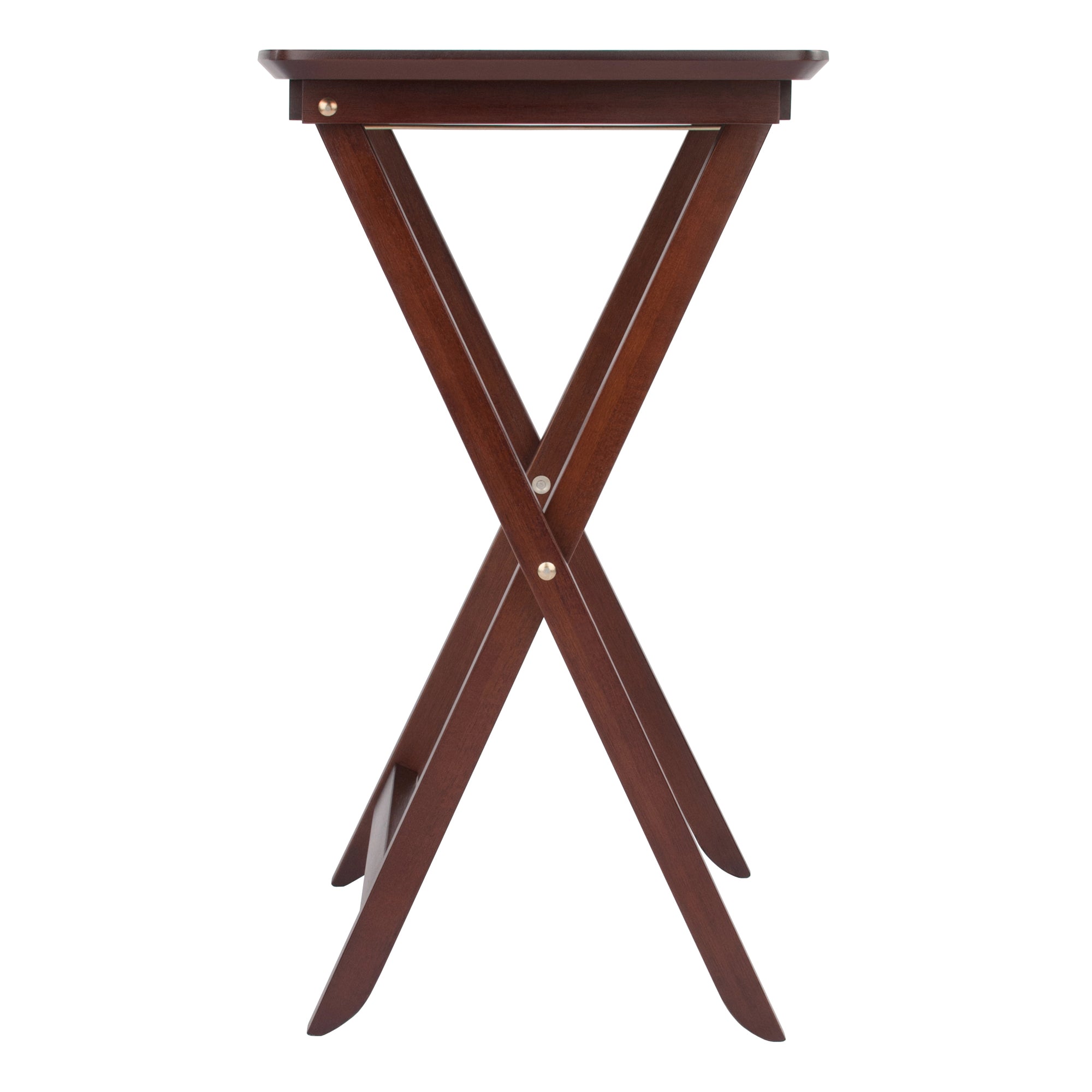 Instantly add tabletop space in the living room, family room, or on the patio with the Darlene 2-Piece Snack Table Set. Slightly tapered legs and a rich Walnut finish add a touch of refinement to this simple set. Each table folds for easy storage.