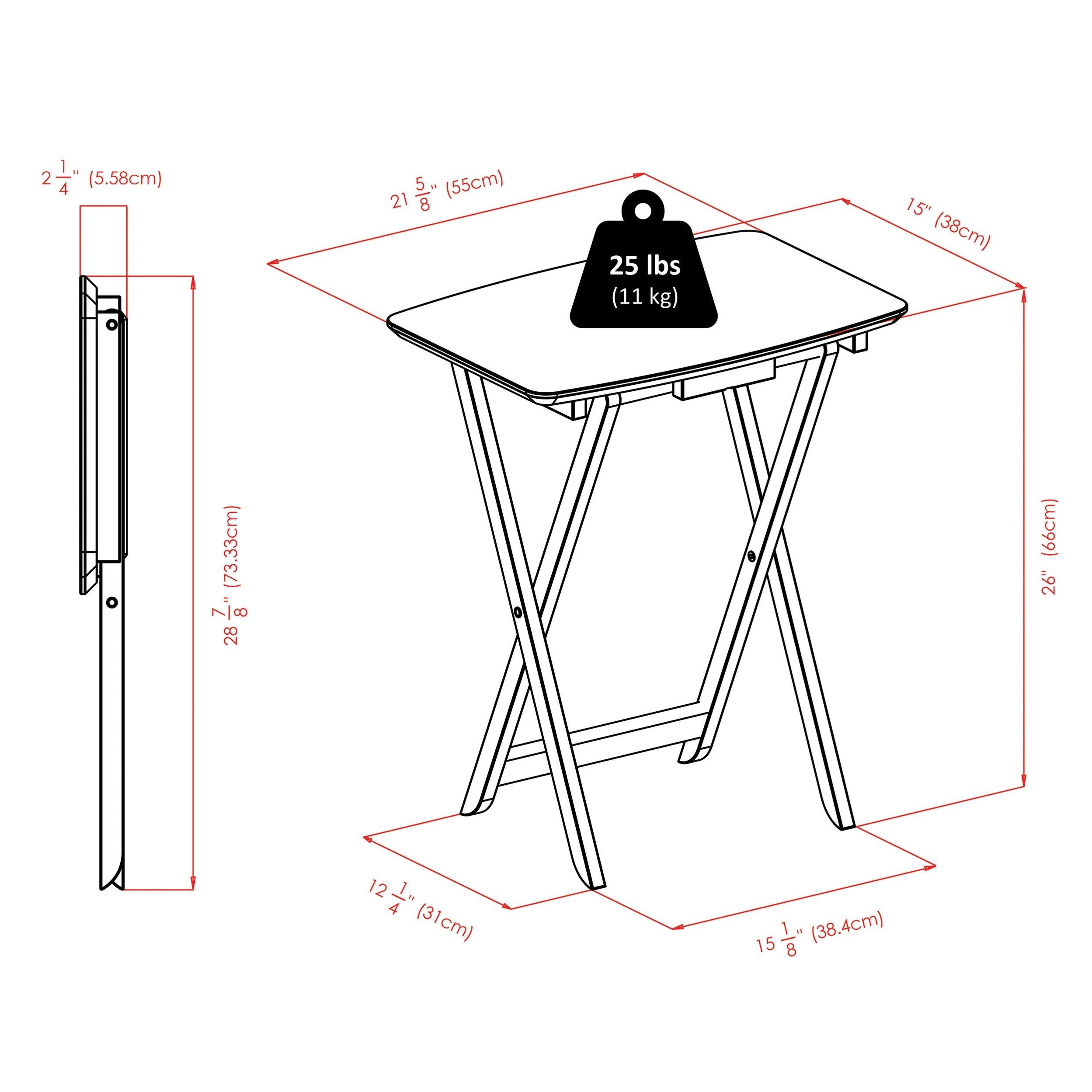 - Static weight capacity 25 lbs. per table