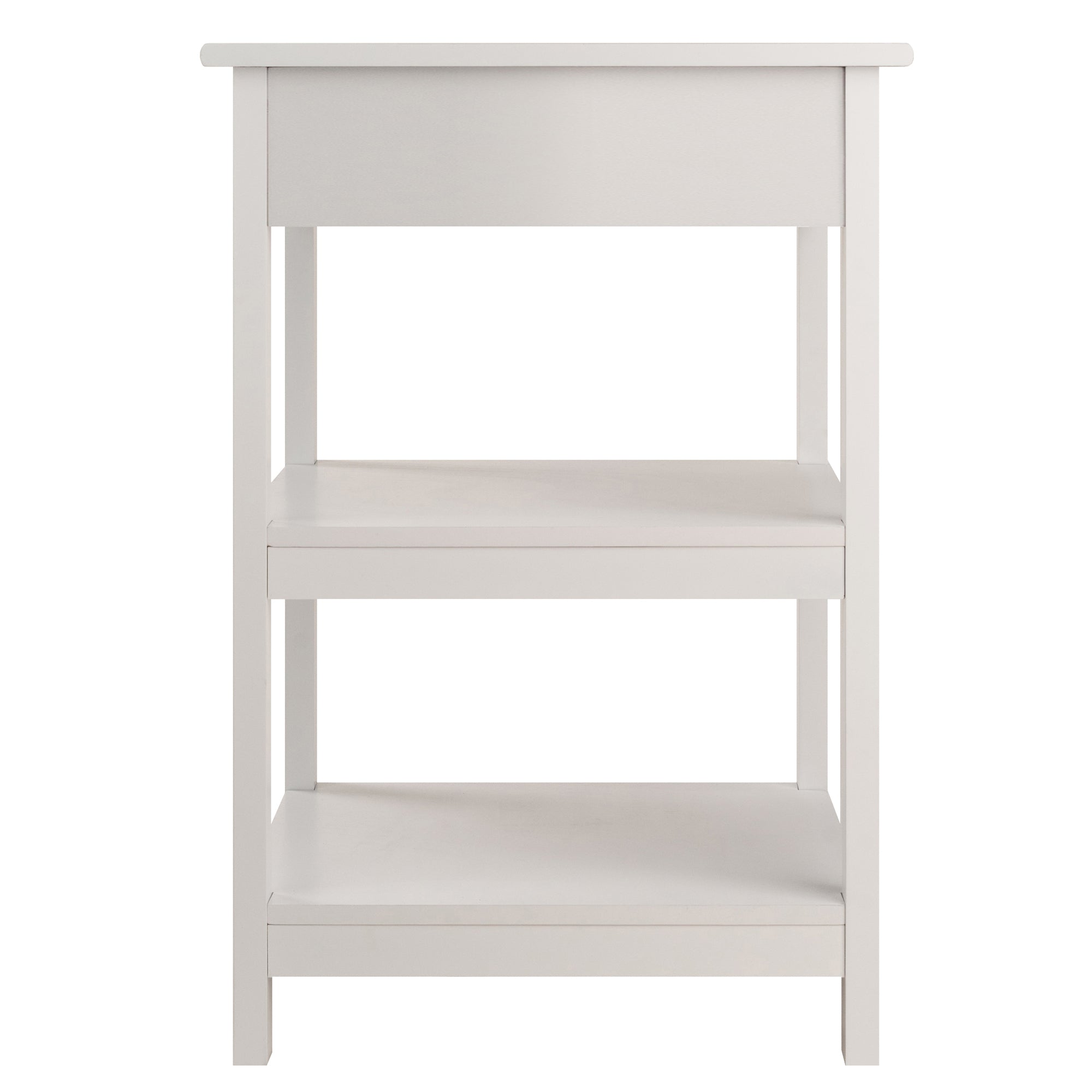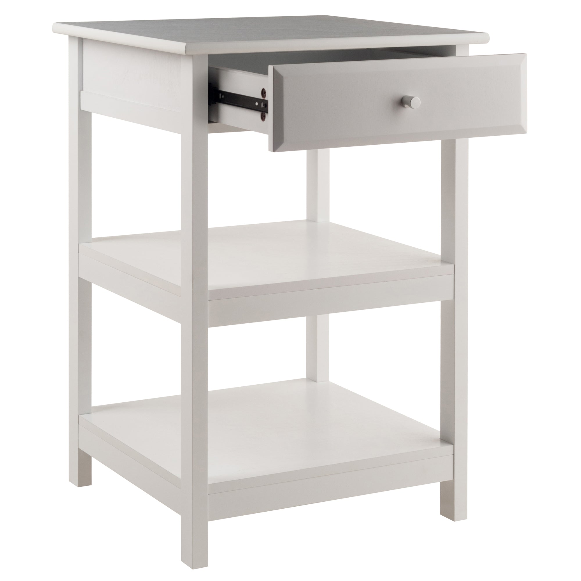 The Delta Printer Table is an ideal addition to any home or professional office. Place a portable printer on the large table top and have plenty of room on the open shelves for reams of paper, file boxes, and more. A printer or fax machine can also go on one of the open shelves, leaving the table top for a lamp or phone. A drawer provides additional storage for smaller office supplies. Designed to complement the Delta Writing Desk, the printer table works great as a stand alone piece. Finished in a rich White. Printer Table overall size is 20.8"W x 20.2"D x 30.7"H. Made of composite wood in a White finish.