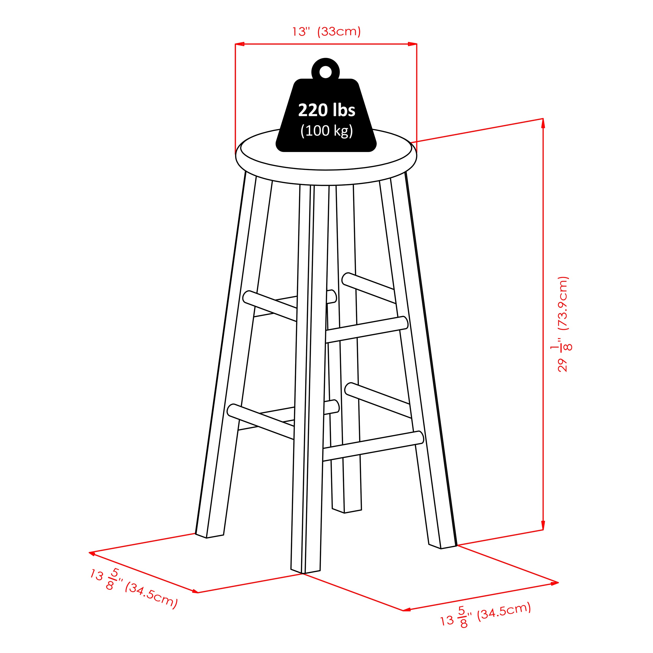 Bring charm and color to your kitchen or family room seating with the Ivy 29" Bar Stool. The sturdy square legs are finished in a Rustic Light Blue that complements the round Walnut seat. Ideal for extra seating, the stool is made of Solid Wood and comes fully assembled. Overall size is 13.6"W x 13.6"D x 29.1"H.