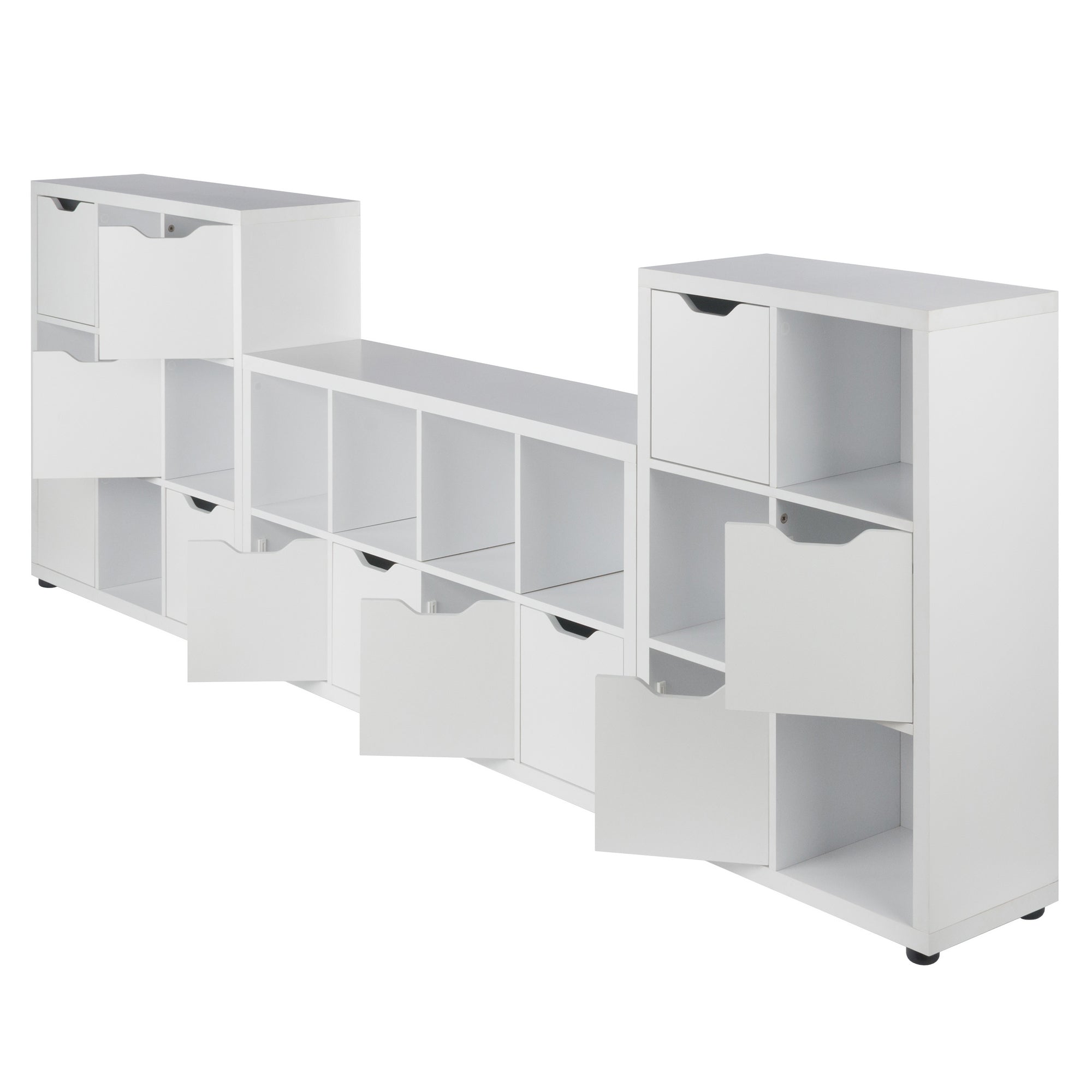 The Julian 3-Piece Storage Cabinet Set by Winsome Wood offers endless storage opportunities. All together, the set has 23 spacious compartments, some with easy-access doors and others open for storage or display. Team up the cabinets in the mudroom or garage to create a perfect wall unit for boots, sports gear, games, and pet paraphernalia. Or use each of the cabinets separately where you most need them. Add any of Winsome's foldable baskets to provide more ways to keep clutter out of sight. Made of sturdy composite wood in a clean, white finish. Each unit comes with attachable rubber feet to prevent floor scratches.